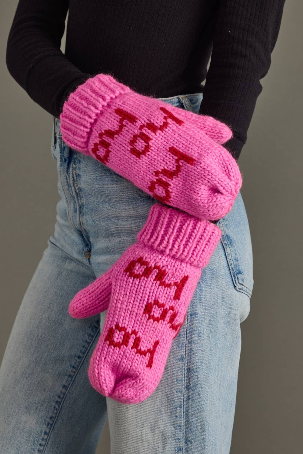 Cardigan en tricot rose vif Texte vert "SKI" au dos 100 % acrylique Pré-emballage 2-2-2-2 (S-XL) Qté min. 8
