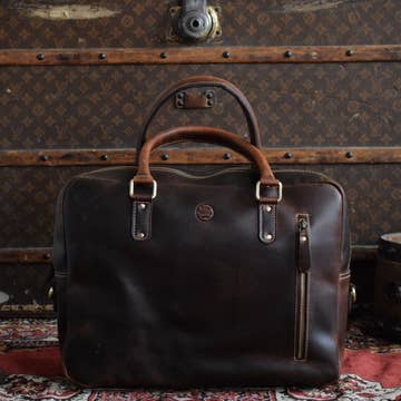 Sac à bandoulière en cuir pleine fleur Marron 12 pouces de hauteur x 16 pouces de longueur x 2 ½ pouces de largeur (31 x 41 x 6,5 cm) Sac à bandoulière en cuir pleine fleur Rabat avant avec poches centrales zippées et boutons-pression Poche arrière zippée et sangle à bagages Poches frontales multiples Grands compartiments intérieurs avec poche arrière zippée et séparateur zippé Bracelet en cuir ajustable Doublure 100 % coton pour plus de durabilité