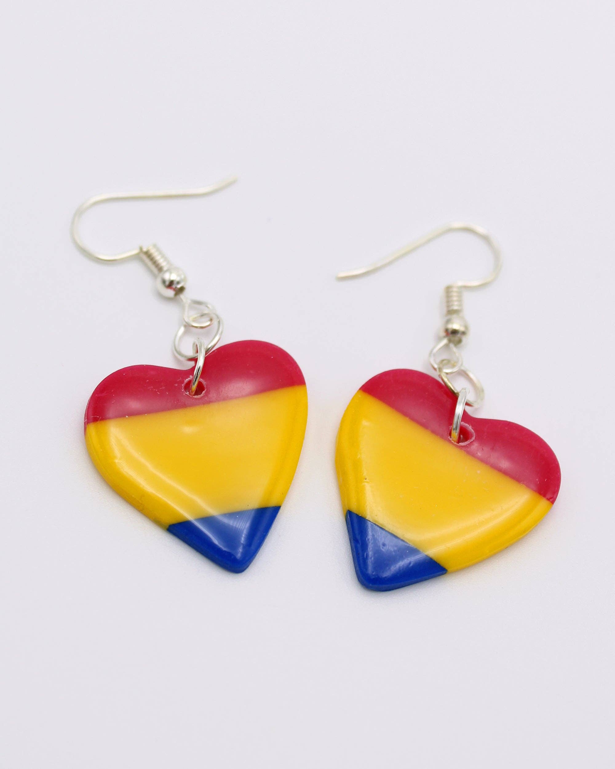 Boucles d'oreilles pendantes en forme de cœur avec drapeau Enby non binaire fabriquées à la main en pâte polymère. Pendentif d'environ 2,5 cm sur crochets en acier inoxydable hypoallergénique. Bijoux Pride LGBTQ+.