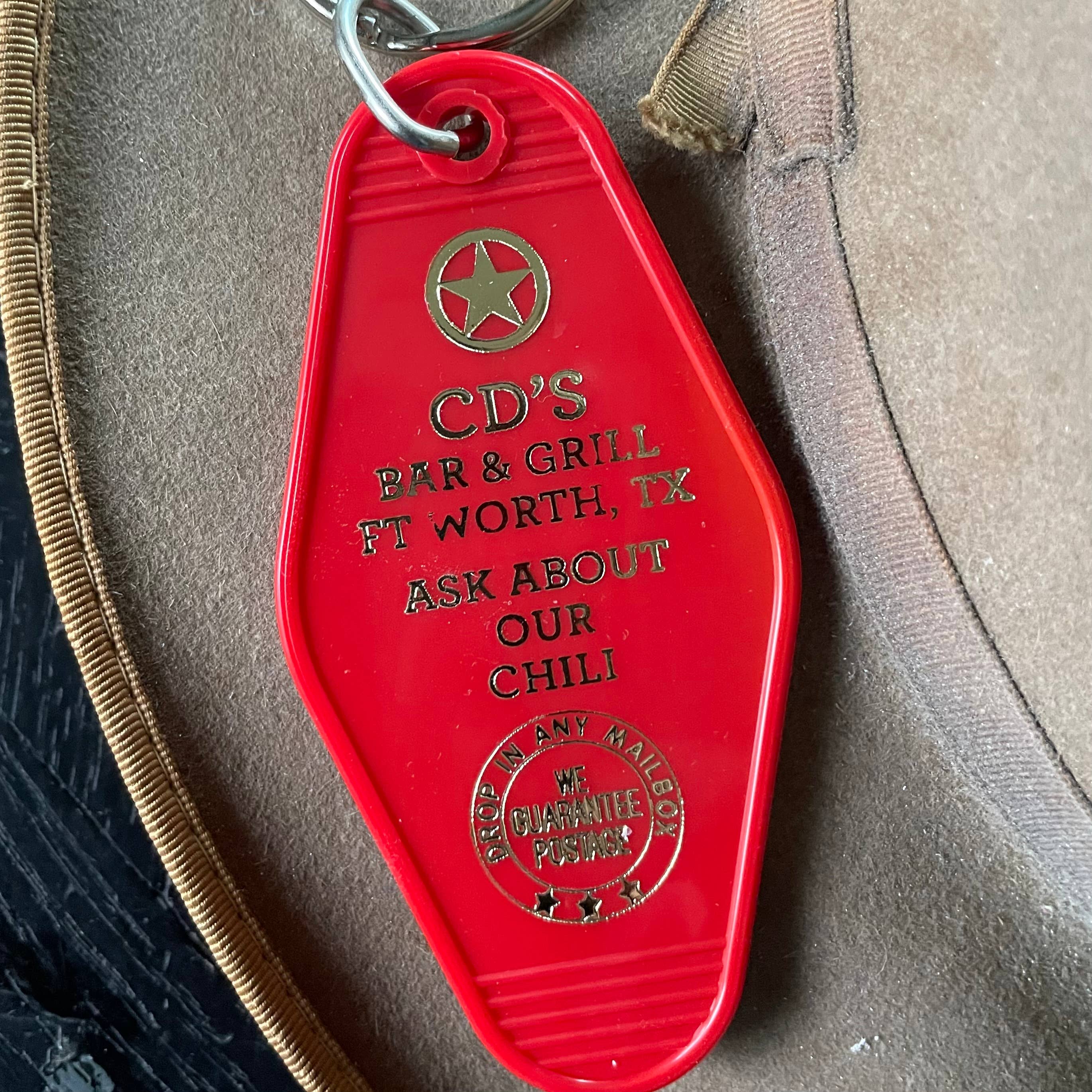 Porte-clés de motel de style vintage, avec anneau coulissant de 32 mm, représentant une émission de télévision emblématique.