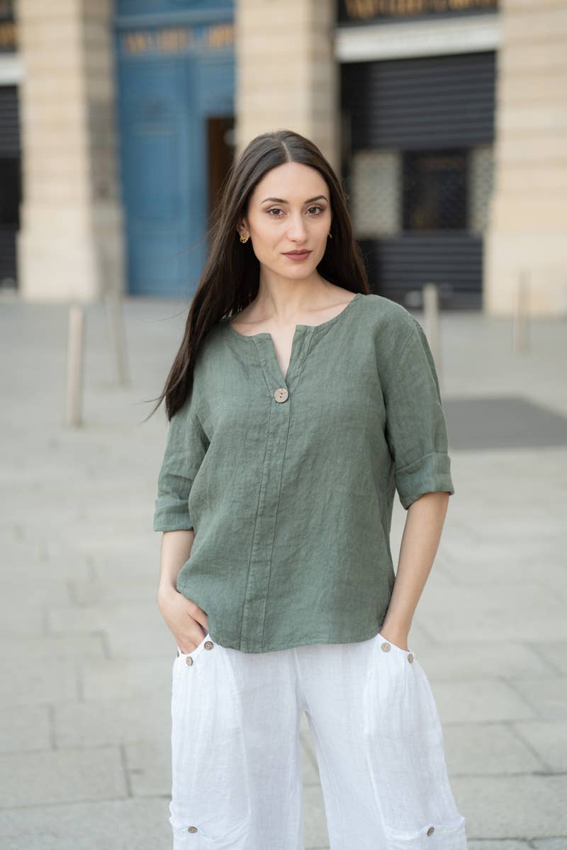 Pays de fabrication : Italie Encolure : Encolure ronde Longueur des manches : Manches 3/4 Occasion : Quotidien Saison : Printemps/Été Silhouette : Standard Style : Bohème et Décontracté Tissu : 100%lin Poids : 300 g (10,58 oz) UGS : 11969L