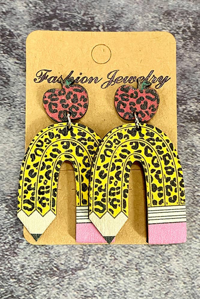 Boucles d'oreilles de baseball rondes en bois avec léopard MOQ, 5 pièces, SP126