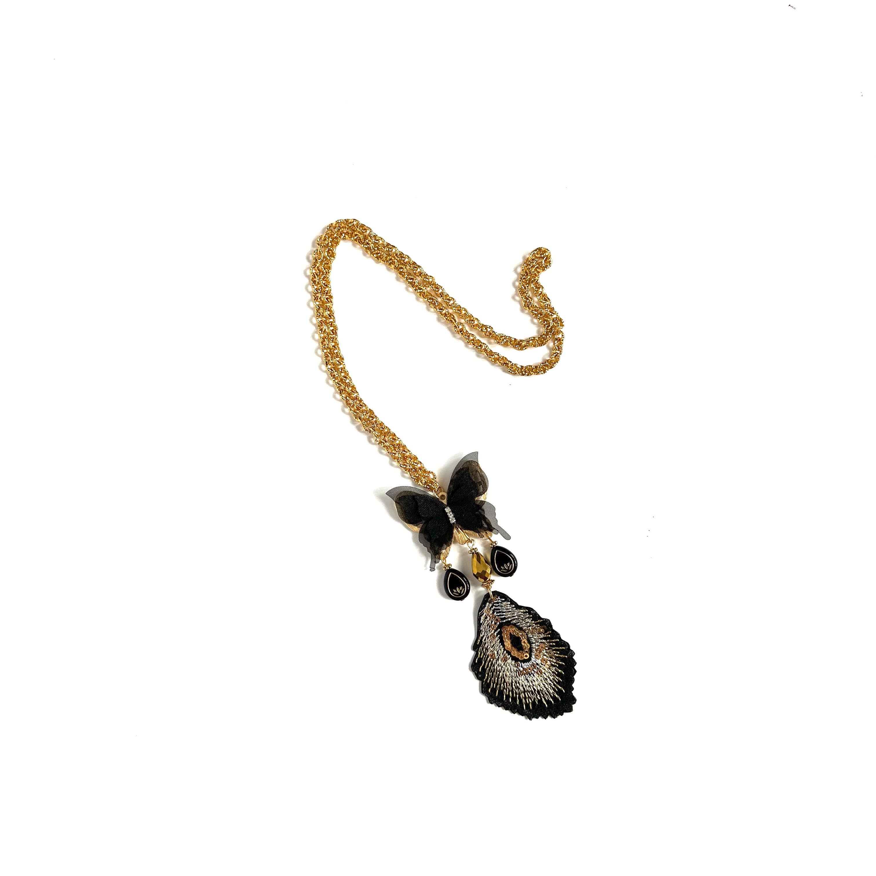 Collier Lake avec pendentif perroquet brodé et médaillon en méthacrylate en vente B2B
