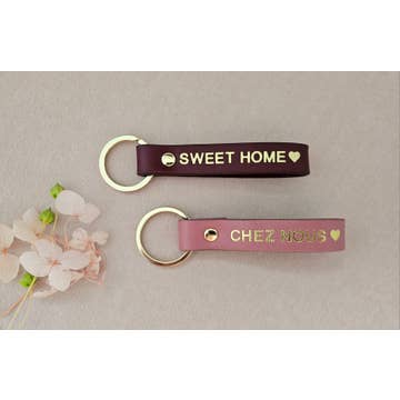 - Porte-clé en cuir personnalisé ; - ciré sur les bords et double face en cuir ; - gravé à chaud à la feuille d'or ; - fabriqué en France ; - idéal pour cadeau famille , cadeau de noël, annonce naissance .