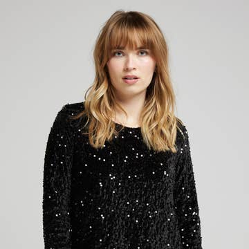 Haut à manches longues avec motif de crâne en strass et col rond