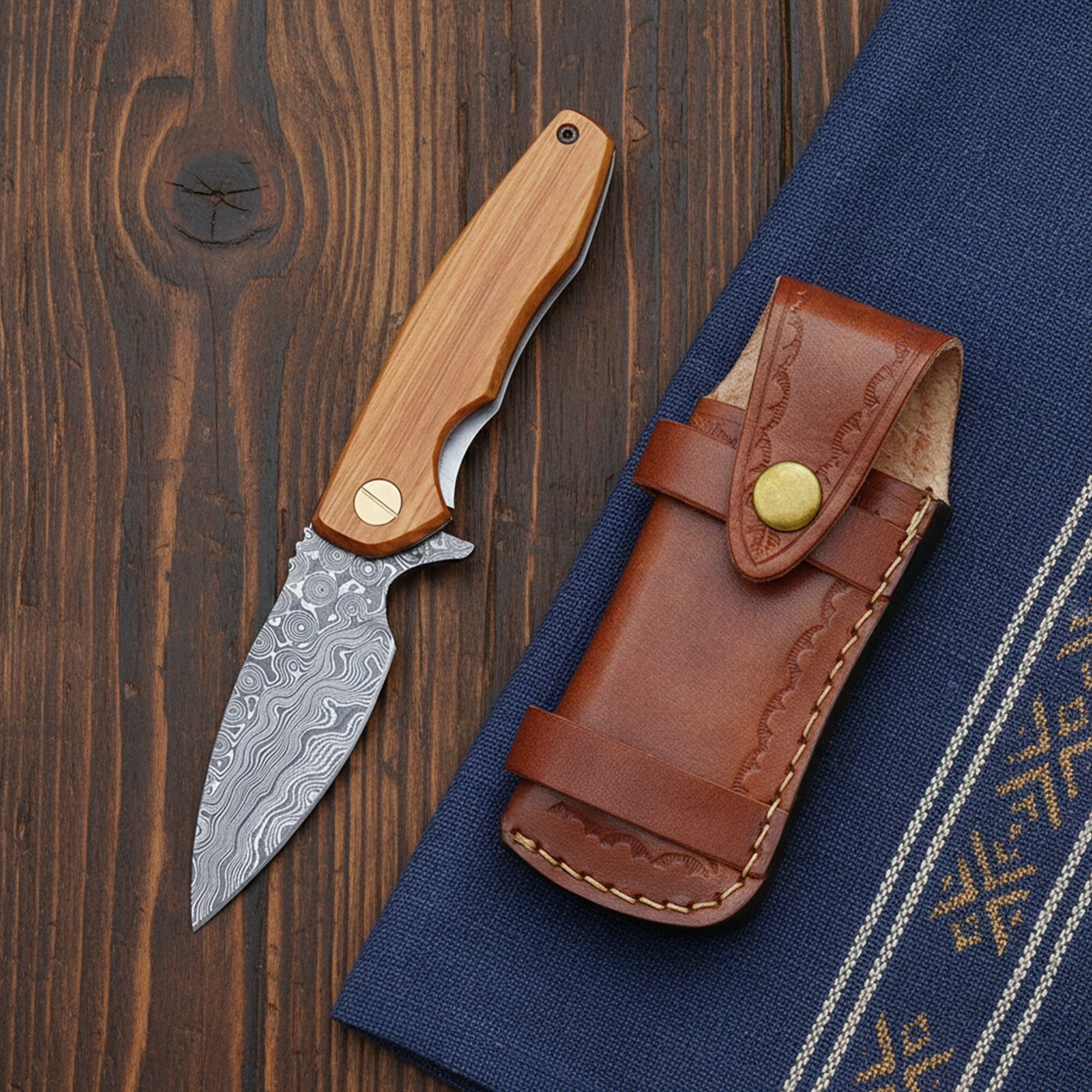 Couteau de poche en acier damas, édition limitée en bois Black Diamond et bois de cerf TF-052 en vente B2B