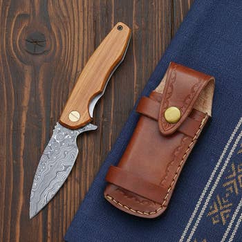 Description du couteau pliant : Couteau pliant en acier damas, couteau de poche damas, couteau damas personnalisé, lame à pointe clippée, couteau pliant à verrouillage arrière, plaquettes gravées en os de chameau, dos sculpté à la main, œillet pour dragonne, étui en cuir cousu main. Taille et mesures : • Longueur totale : 16,5 cm (6,5 pouces) • Longueur de la lame : 7,6 cm (3,00 pouces) (autorisé partout) • Épaisseur de la lame : 2,5 mm Autres caractéristiques : • Étui en cuir cousu main • Lame en acier damas tordue à 250 couches • Dos sculpté à la main • Gravure gratuite • Garde gravée • Bois de noyer • Acier à affûter