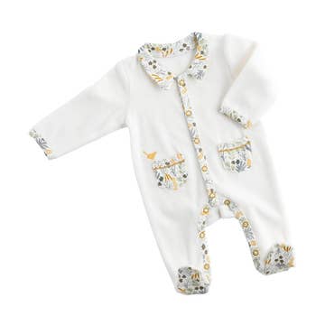Pyjama pour bébé à fermeture éclair bidirectionnelle avec mitaines pliables - 100 % coton biologique - Native Aussie Animals en vente B2B