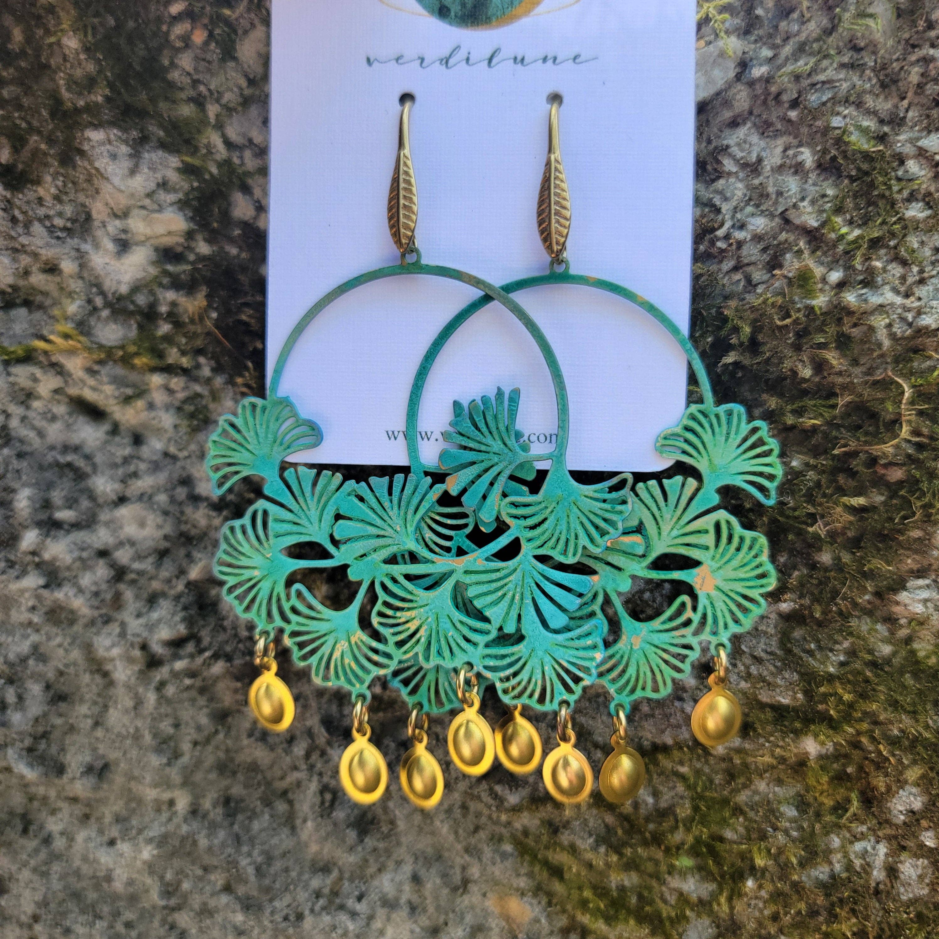 Boucles d'oreilles en laiton avec feuilles de bégonia perlées