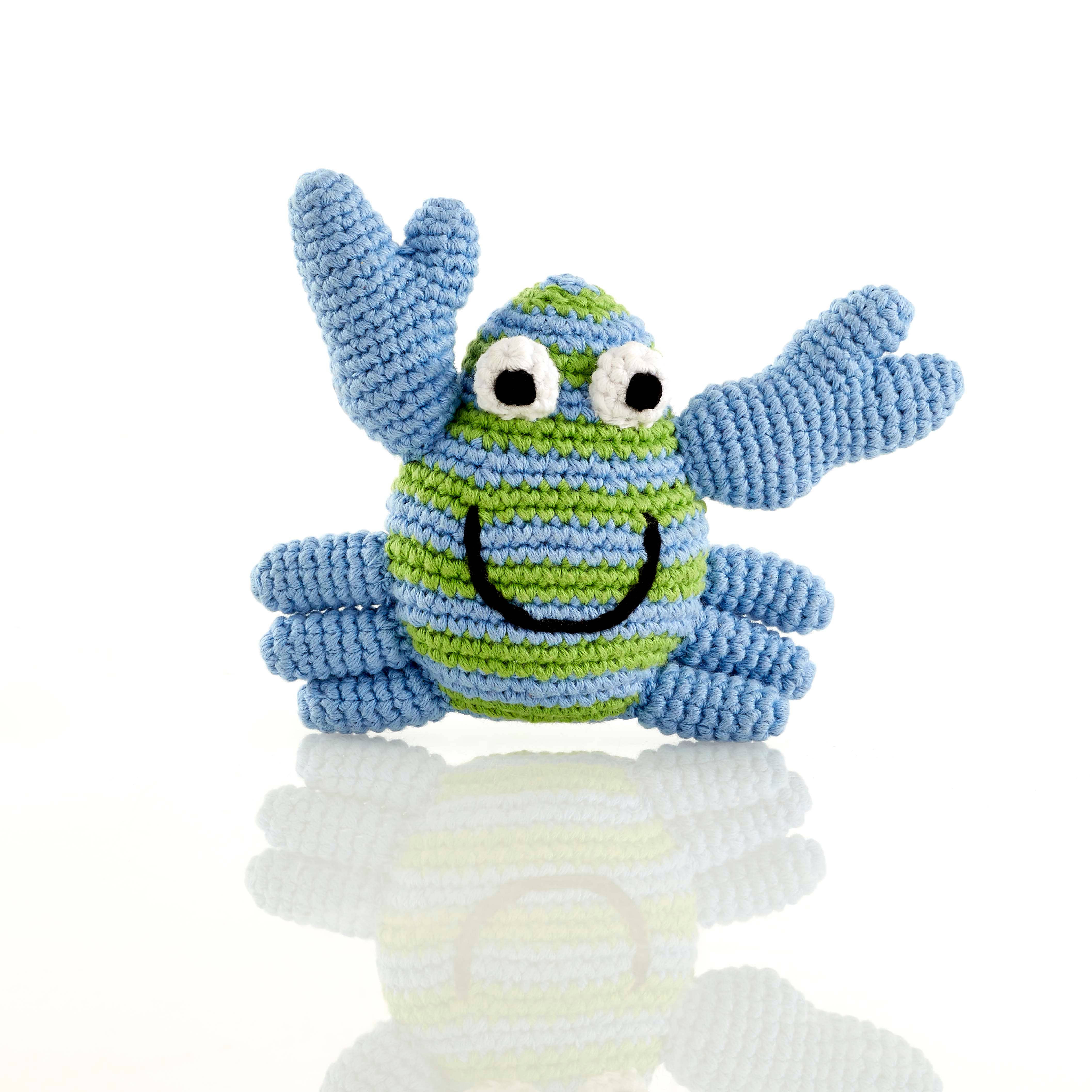 Mini-hochet « castor » en 100 % coton KBa (biologique) Nicki, Taille : env. 11 x 14 cm Le castor porte un hochet et une genouillère Lavable