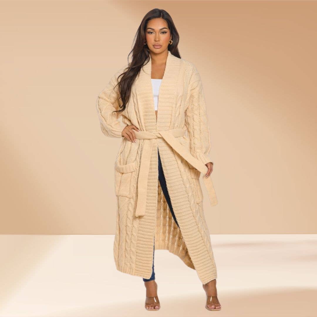 -Ensemble de salon 3 pièces -Pantalon large à taille élastique -Haut sans manches à hauteur de taille -Cardigan long ouvert avec fentes latérales et poches avant
