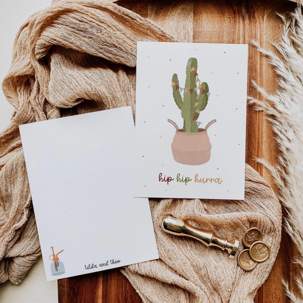 La carte est au format A6 et est imprimée sur du papier naturel de haute qualité et naturel de 300 g/m² en crème. Au dos, vous trouverez une jolie illustration et le lettrage Tilda & Theo. Sinon, le dos de la carte est entièrement blanc, parfait pour toutes les occasions.