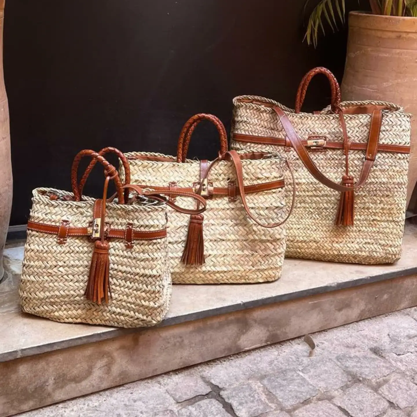 Vous recherchez des paniers à la fois spacieux et tendance ? Quels sont les plus pratiques et les plus polyvalents ? Alors rassurez-vous, car Marrakech Metacraft est là pour vous. Apportez un peu de Maroc à votre utilisation avec une gamme de nos élégants sacs en feuilles de palmier fabriqués au Maroc. Fabriqués entièrement à la main avec des feuilles de palmier et de la paille 100 % compostable, nos paniers sont le meilleur choix pour le rangement et le transport de marchandises. Vous pouvez également les utiliser pour un pique-nique ou simplement lors d'une journée à la plage. Ce panier marocain élégant et chic peut également être remplacé par vos sacs à main. Sac et panier à un prix aussi décent et raisonnable ? Tout simplement incroyable Pour toute personnalisation, veuillez nous envoyer un message.