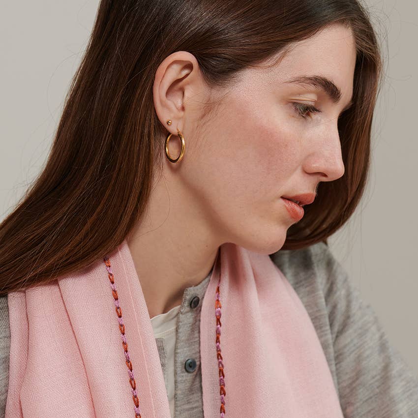 Cette écharpe tissée en diamant est originaire de la région du Cachemire en Inde. La laine provient de chèvres spéciales qui font partie de la région depuis des générations. La laine est obtenue de manière éthique, dans le respect à la fois des animaux et des soignants. L'écharpe mesure 100 x 200 cm et la petite bordure décorative est également ajoutée à la main pour une touche unique.