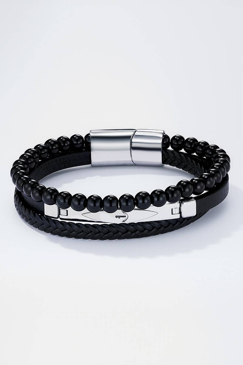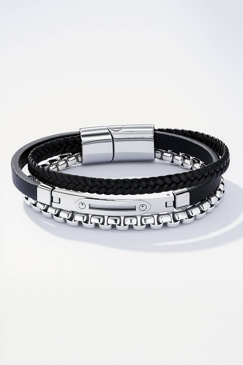 Bracelet en cuir et en acier inoxydable 324OP91 en vente B2B