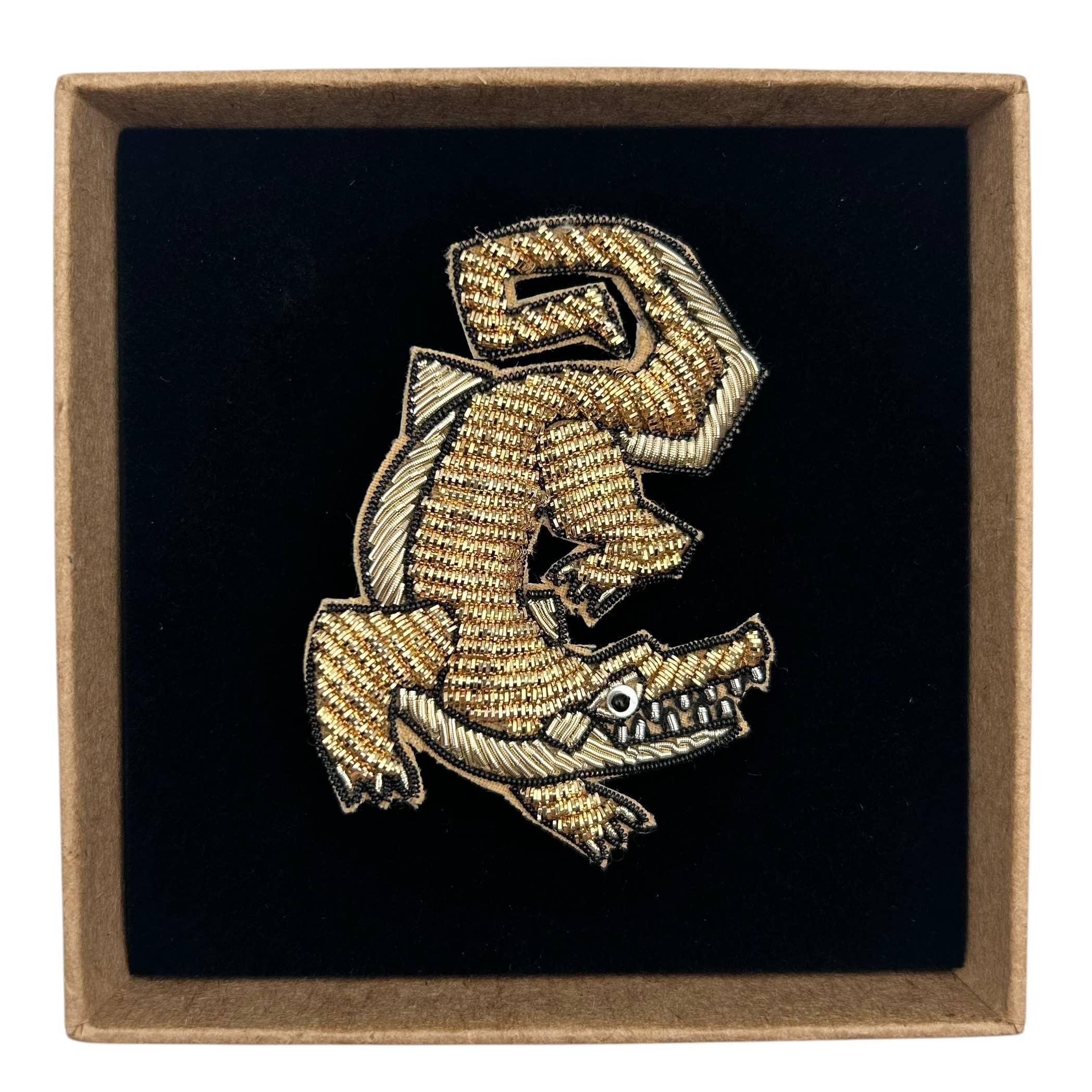 Une broche tigre volant brodée à la main, originale et charmante. Cette épingle mesure 7 cm d’un bout à l’autre et est livrée dans une boîte cadeau en carton recyclé. Fabriquée en Inde. Prix de gros : 8,00 £ / 9,50 € / 10,50 $ Prix conseillé : 19,99 £ / 23,99 € / 24,99 $ Commande minimum : 2 pièces