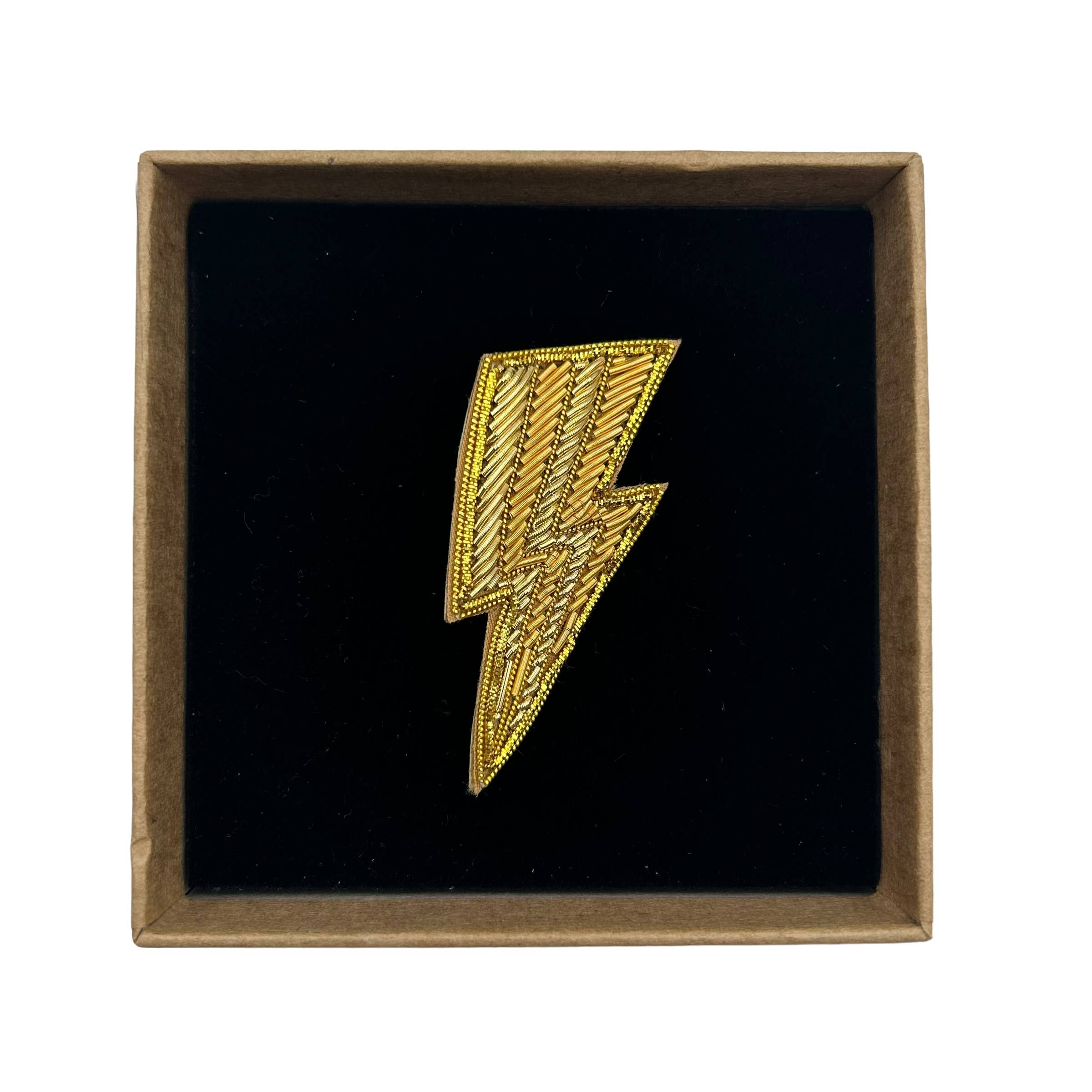 Broche éclair dorée brodée à la main
