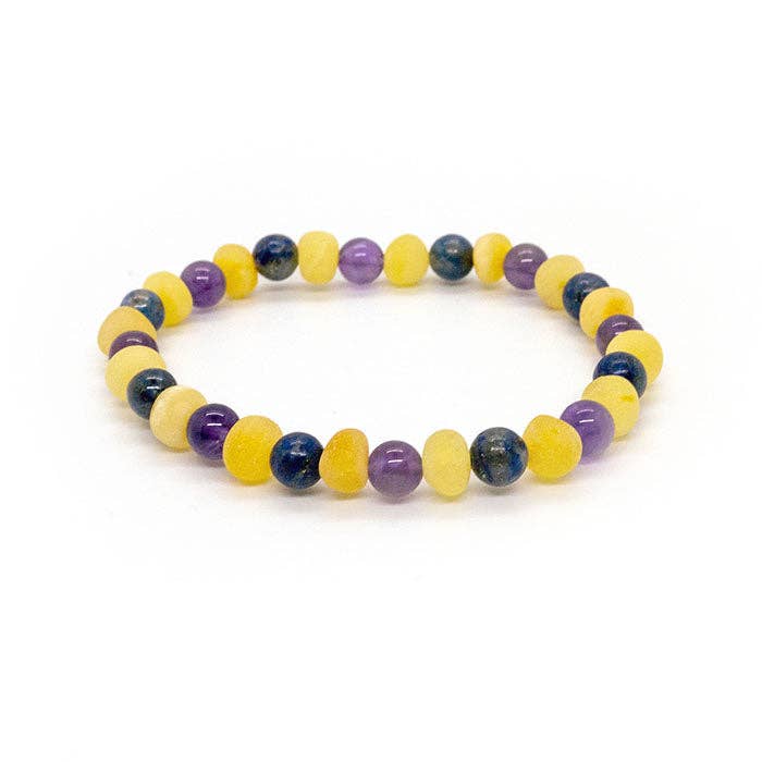 Les bracelets sont disponibles en 5,5 pouces pour bébé, bébé, enfant en bas âge et certains grands enfants, noués individuellement et fermoir à vis. Pour les bébés : Réduction des symptômes de poussée dentaire : fièvre, agitation, joues rouges, bave. Aide également certains nourrissons à réduire les symptômes causés par : les coliques, le reflux acide et l'eczéma. Les bracelets ne sont pas destinés à être mâchés par bébé, l'ambre libère des quantités microscopiques d'huile, car elle se réchauffe avec la température naturelle du corps, qui est absorbée par la peau et la circulation sanguine. L'ambre de la Baltique contient de l'acide succinique (anti-fièvre, anti-inflammatoire), composé qui confère aux colliers de dentition en ambre de la Baltique une qualité thérapeutique Les bracelets de dentition doivent être retirés pendant les siestes et lorsqu'ils ne sont pas surveillés. L'ambre de la Baltique est une substance organique, une « résine fossile » produite par les pins qui ont poussé dans le nord de l'Europe. En demandant au bébé de porter le collier tous les jours, cela aide à réduire les symptômes courants liés à la poussée dentaire tels que : joues rouges, fièvre, gencives enflées et érythème fessier.