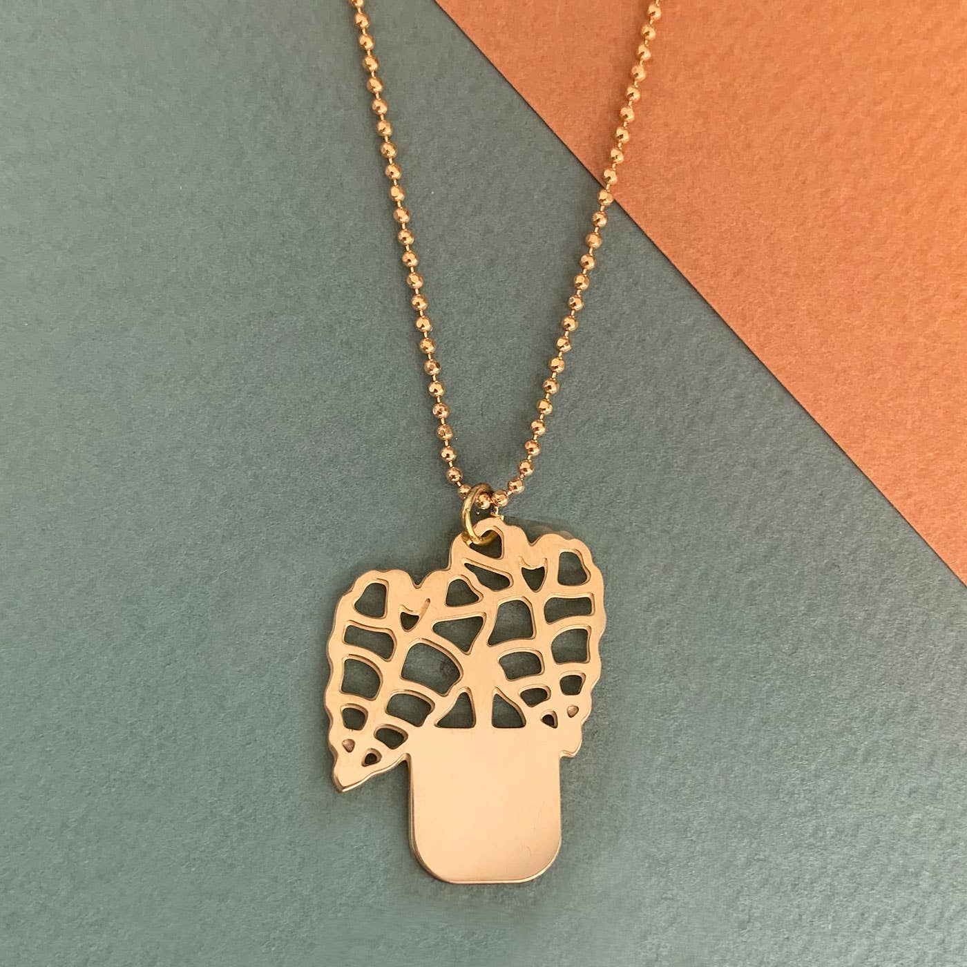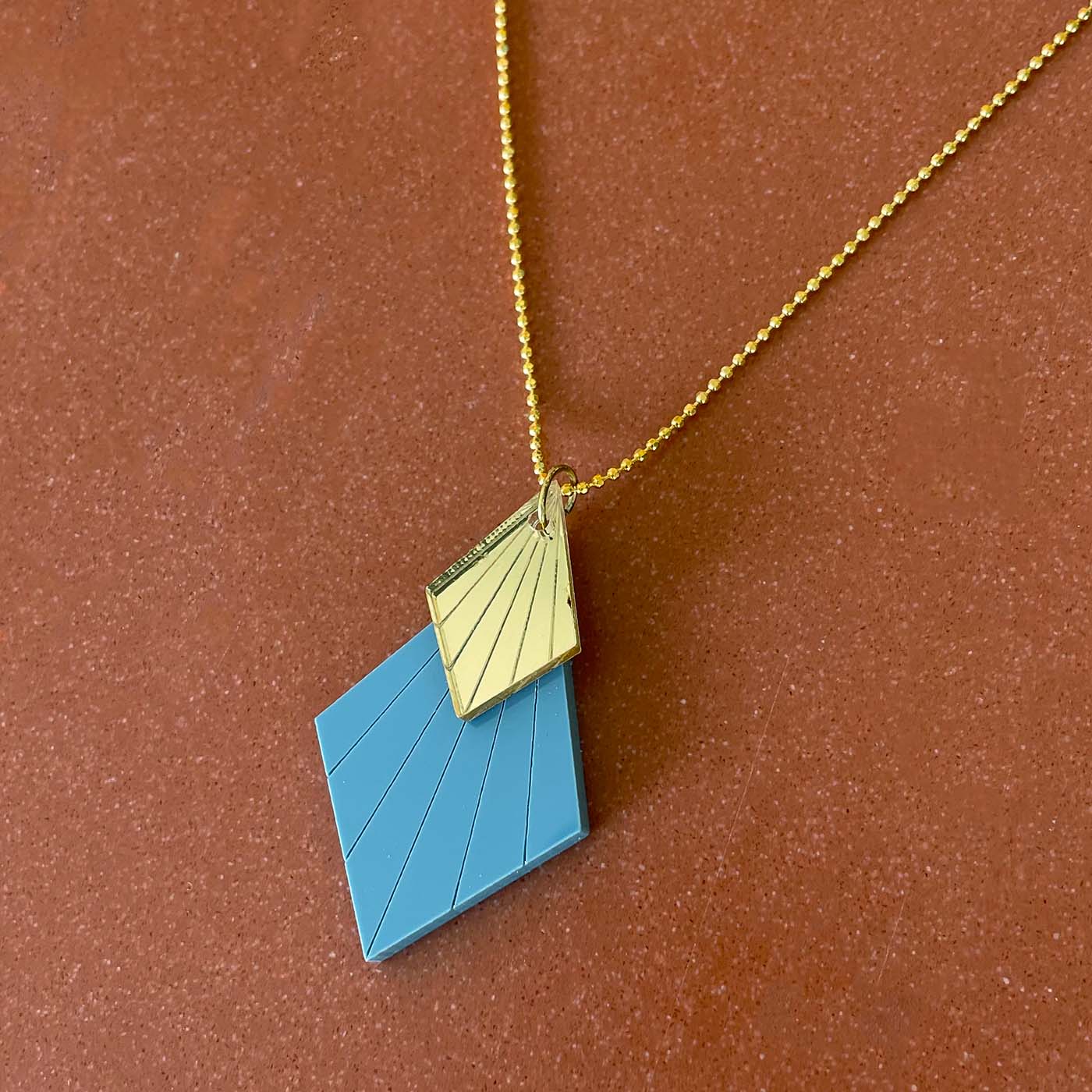 Collier plaqué or 24 carats de haute qualité avec pendentif en plastique recyclé. Longueur du collier : environ 45 cm.