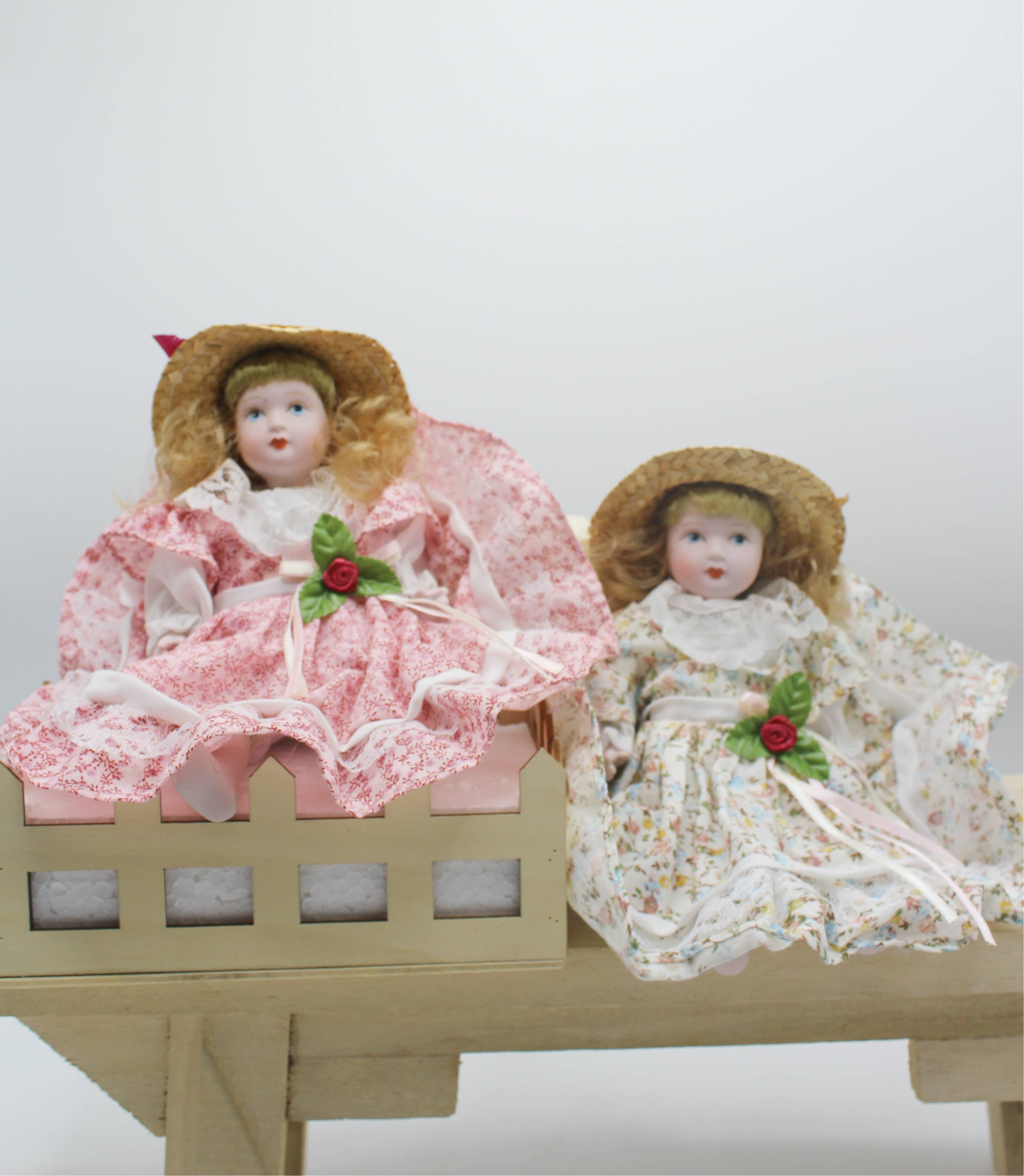 Ensemble de 2 poupées vintage en porcelaine avec robe carrée cm.16 en vente B2B