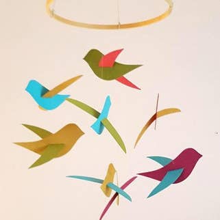 Un mobile pour bébé avec six éléphants recouverts de divers tissus Kikoy. Détails : * Dimensions des éléphants : 4,5 pouces x 2,5 pouces, suspendu 4 pouces * Dimensions du mobile : 10 pouces de diamètre, peut être suspendu de 7 pouces