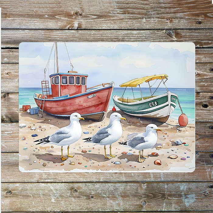 Plaque en métal nautique humoristique avec mouettes sur la plage en vente B2B