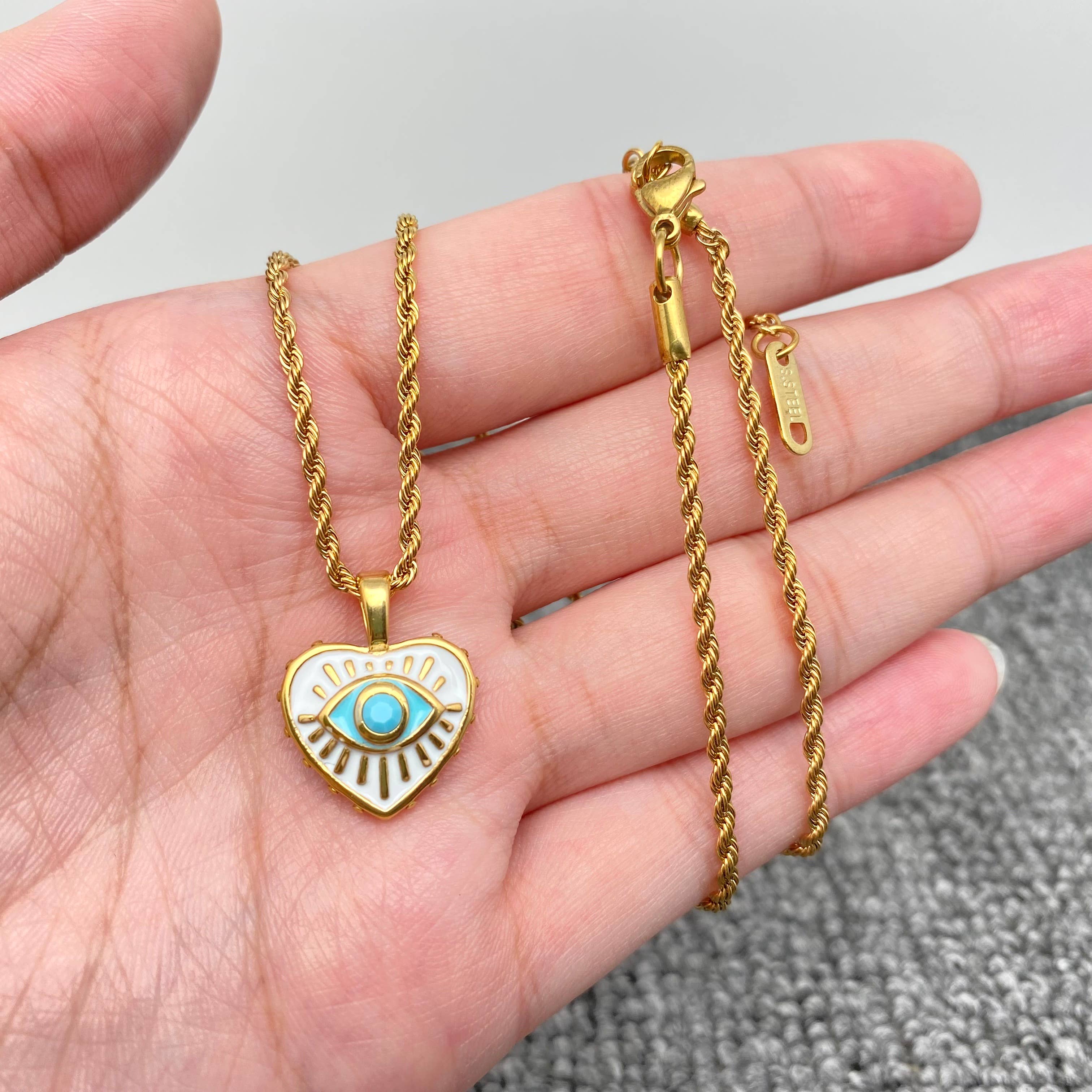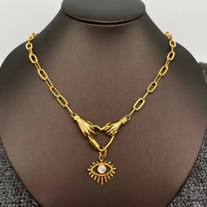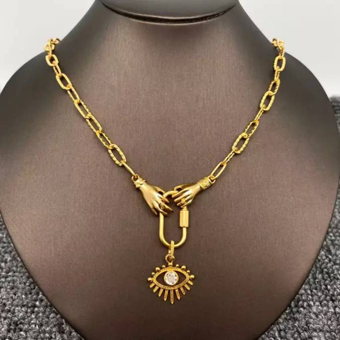 Collier pendentif œil maléfique multi styles en acier inoxydable plaqué or 18K - Mio Queena en vente B2B