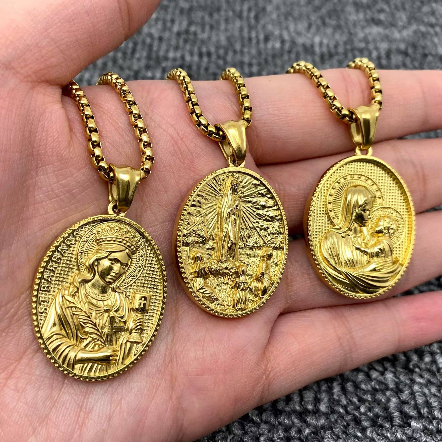 Type : collier avec pendentif Matériau : acier inoxydable, plaqué or 18 carats Dimensions du pendentif : 19 à 27 mm de long × 12 à 32 mm de large Longueur de la chaîne : 500 mm Procédé : électroplacage sous vide et polissage manuel, ne ternit pas Surface : haute brillance ★ Fabriqué en acier inoxydable de haute qualité, sans plomb, sans danger pour le corps humain. ★ Cadeau parfait de bijou.