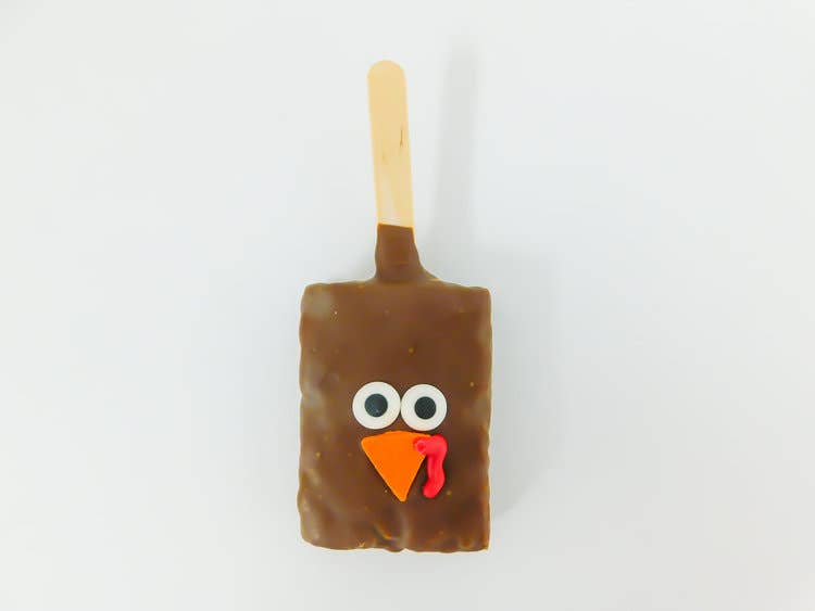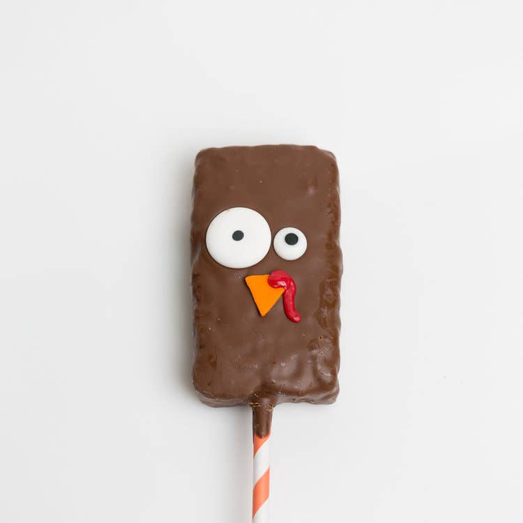 Biscuit sandwich au chocolat recouvert de chocolat avec un visage de dinde fantaisiste