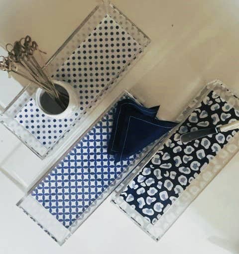Plateau décoratif simple en forme de guépard Guépard avec clé grecque Quand l'organisation rencontre le style. La collection propose des accessoires pour ranger les bijoux, les articles de toilette, le bureau et les réceptions. Fabriqué à la main aux États-Unis à partir de lucite durable. À associer avec un plateau à guépards en chocolat Insert en papier imprimé épais avec papier solide interchangeable assorti en dessous. 12 po de longueur x 12 po de largeur x 3 po de hauteur avec deux poignées intégrées. Essuyez avec un chiffon humide et séchez avec une serviette propre et sèche.
