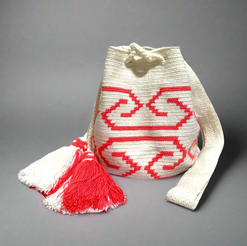 Ces nouveaux sacs au crochet aux motifs aztèques sont l'accessoire parfait pour vos tenues décontractées. Leurs tons nude s’accordent avec tout. Ces sacs seau de taille moyenne dans un style bohème peuvent se porter à l’épaule ou en bandoulière. Caractéristiques : - Tous sont de grands sacs au crochet - Sac seau en crochet - Porté bandoulière ou à l’épaule - Fermeture par cordon - Technique de crochet double fil - Matière : fils acryliques (70 % coton / 30 % polyester) - Taille moyenne. Dimensions approximatives : corps : 24 cm de haut x 19 cm de large ; bandoulière : 3,8 cm de large, chute de 51 cm - Lavable en machine (suivre les instructions spécifiques) - Sacs en édition limitée - Cordon spécial avec pompons au crochet Vous souhaitez la taille grande ? Découvrez les grands sacs aztèques ici. Fabriqué à la main au crochet par des femmes indigènes de Colombie et conçu par Colorful 4U. Pour toute question, envoyez-nous un message privé sur Instagram @colorful_4U ou par email à contact@colorful4u.com. Un seul exemplaire disponible par design ! Ne ratez pas votre préféré !