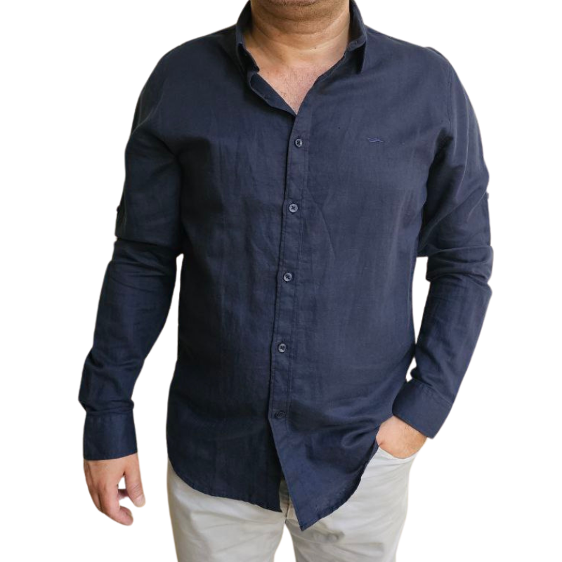 Manches retroussées en coton naturel pour homme, avec boutons blancs. Fabriqué à partir du meilleur coton Pima péruvien. Coupe décontractée douce et confortable, respirante.