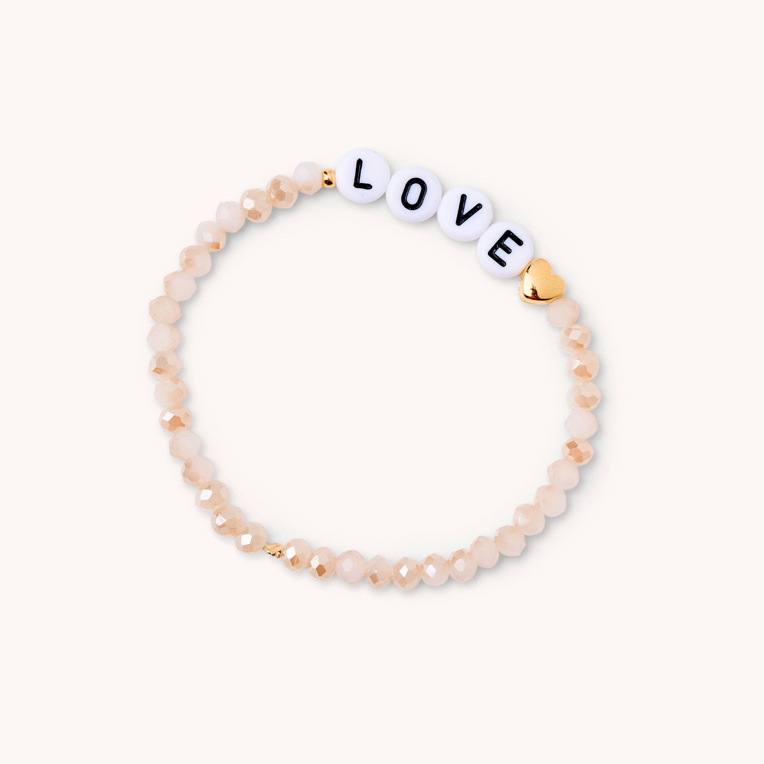 Mama♡ Bracelet en perles de verre dans des tons nude avec des perles en acrylique et une étoile plaquée or 18 carats ainsi que des boules plaquées or 18 carats. Conçu et assemblé avec amour à Munich. Texte : "Mama♡" Perles de verre : 3,5 mm | Perles en acrylique : 7x4 mm Bracelet élastique © Design par Vivi.