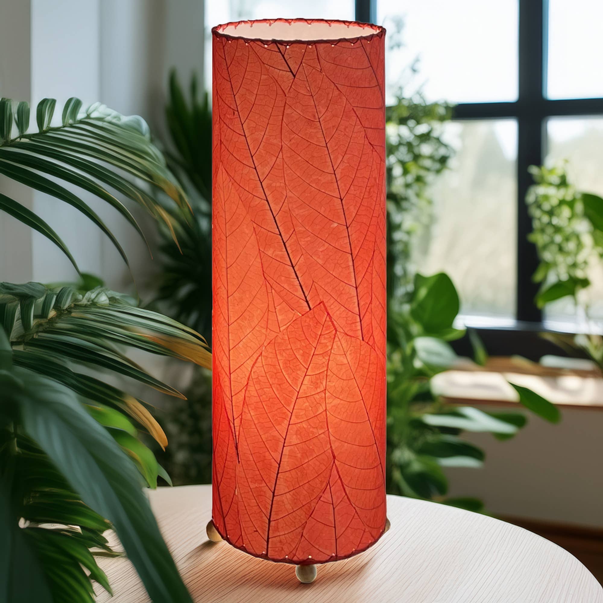Lampe de table cylindrique en feuille de cacao de 24 pouces, orange, feuilles d'ombrage