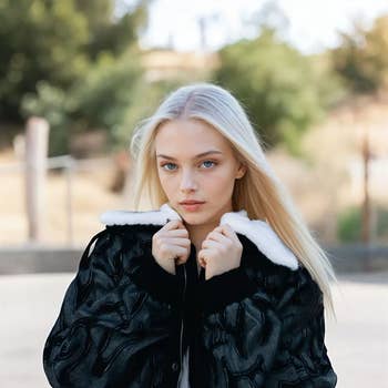 Veste bomber à manches longues unicolore col mao et pinces à l'avant Notre mannequin mesure 1M76 et porte une taille S