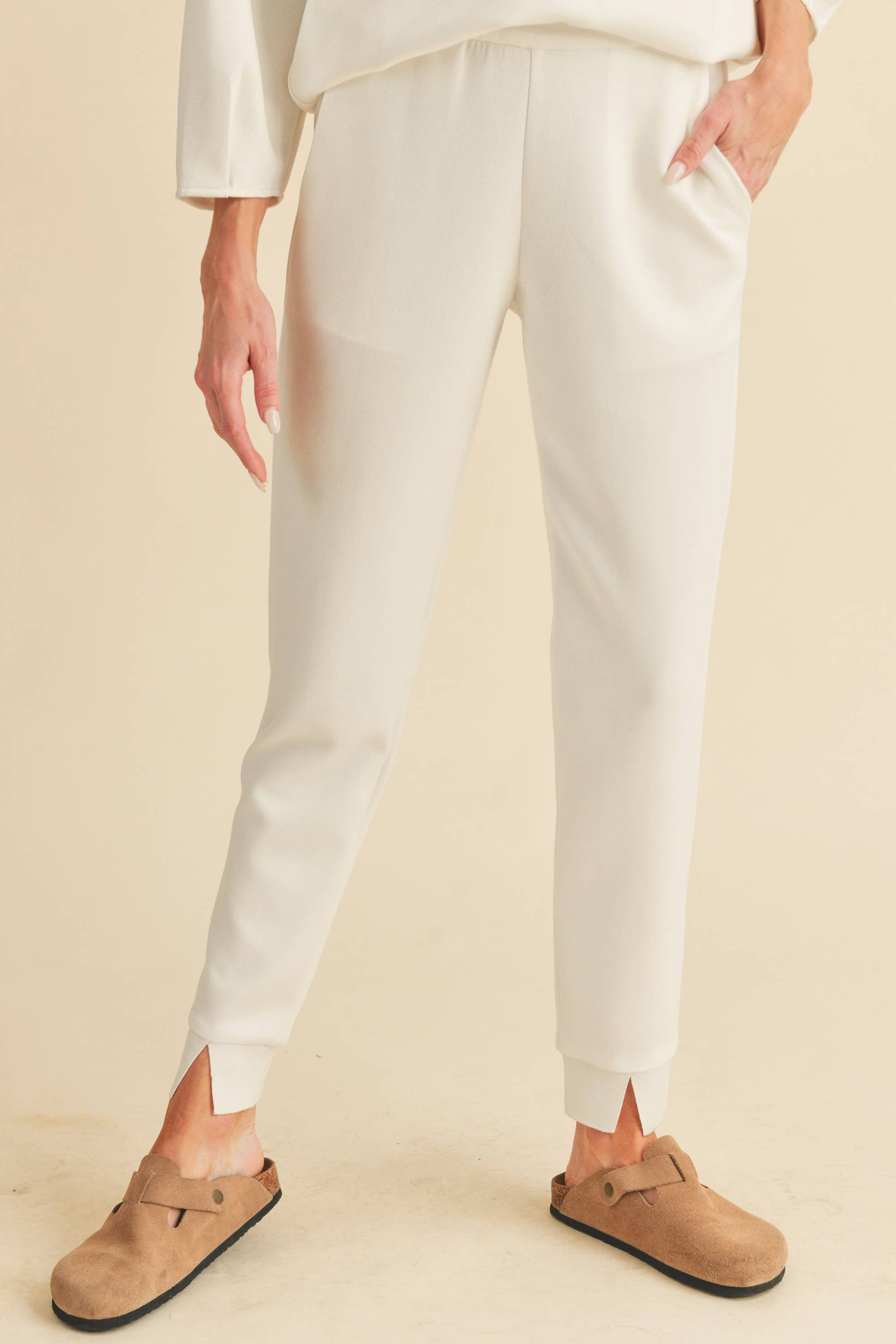Pantalon Lydia qui vous accompagne de la salle de sport à n'importe où vous devez aller. Conçu avec un ourlet fendu aux chevilles et deux poches avant, ce jogging est non seulement polyvalent mais aussi à la pointe de la mode.