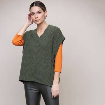 Gilet tunique en coton tricoté à motif tourbillon côtier avec nœud à l'avant en vente B2B