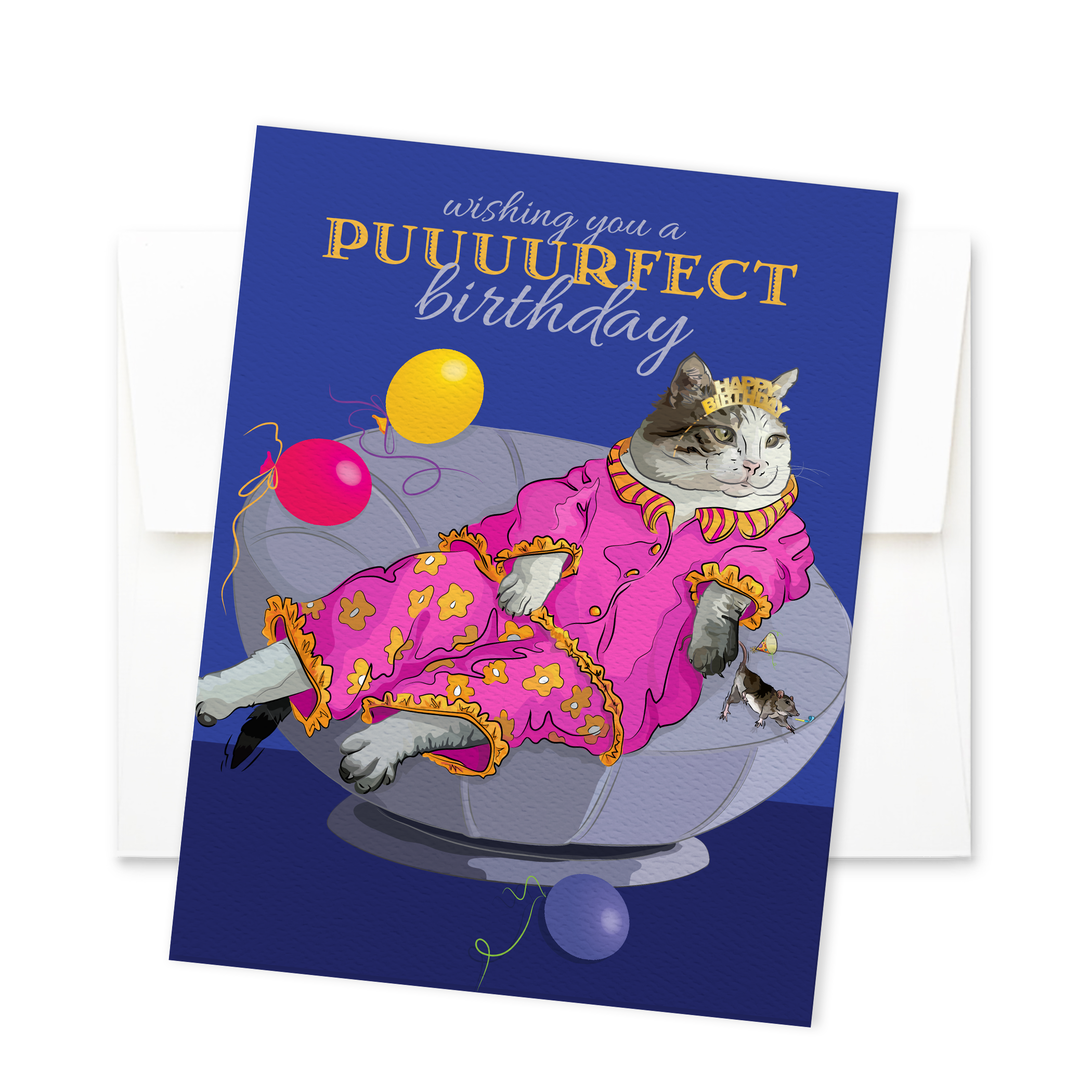 Carte d'anniversaire | Chiot et chat drôles avec des vœux et des baisers ! en vente B2B