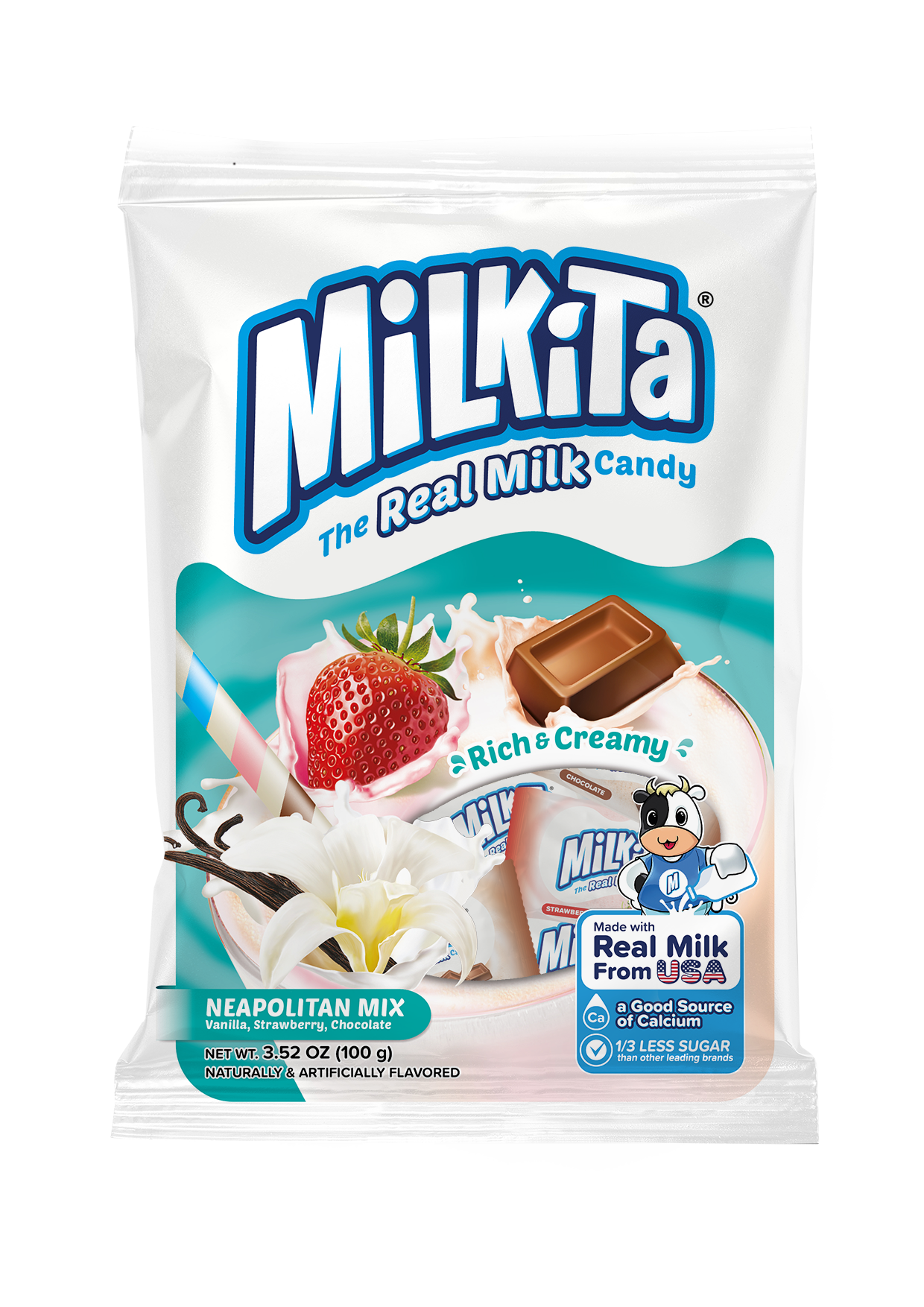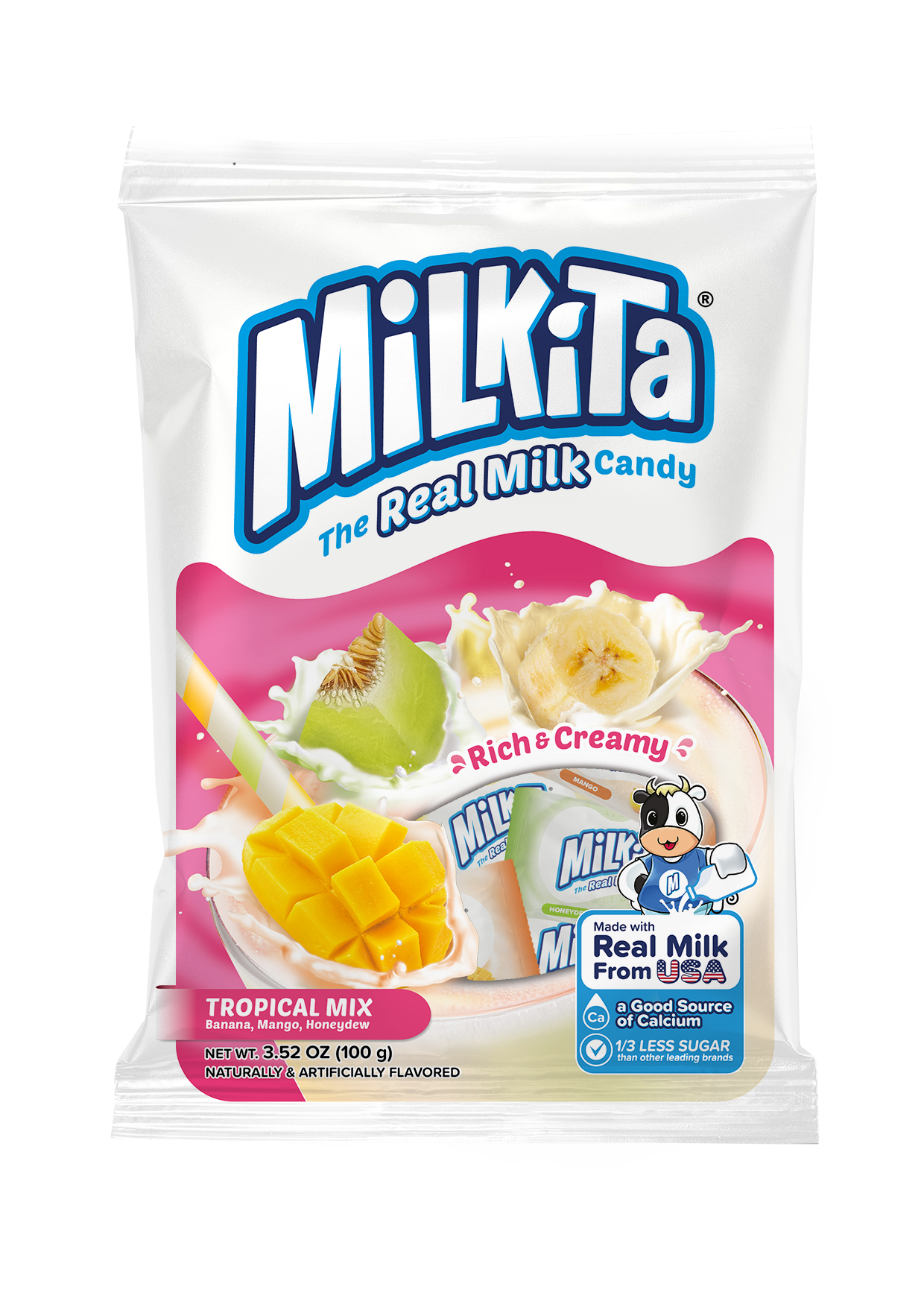 Milkita Juicy Mix est un mélange vibrant de bonbons au lait crémeux infusés avec les saveurs rafraîchissantes d'orange, de mangue et de raisin. Fabriqué avec du vrai lait, chaque pièce offre une explosion douce et fruitée de douceur à la fois crémeuse et juteuse à chaque bouchée.