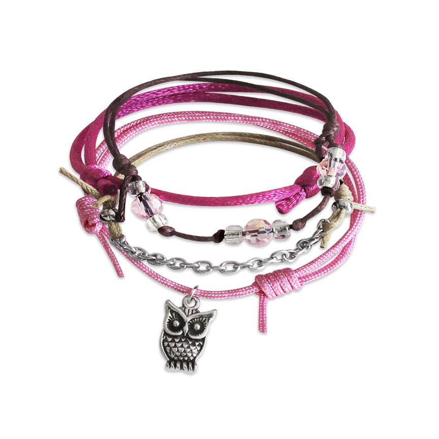 Bracelets hibou, lot de 4 bracelets à breloques, cordes roses