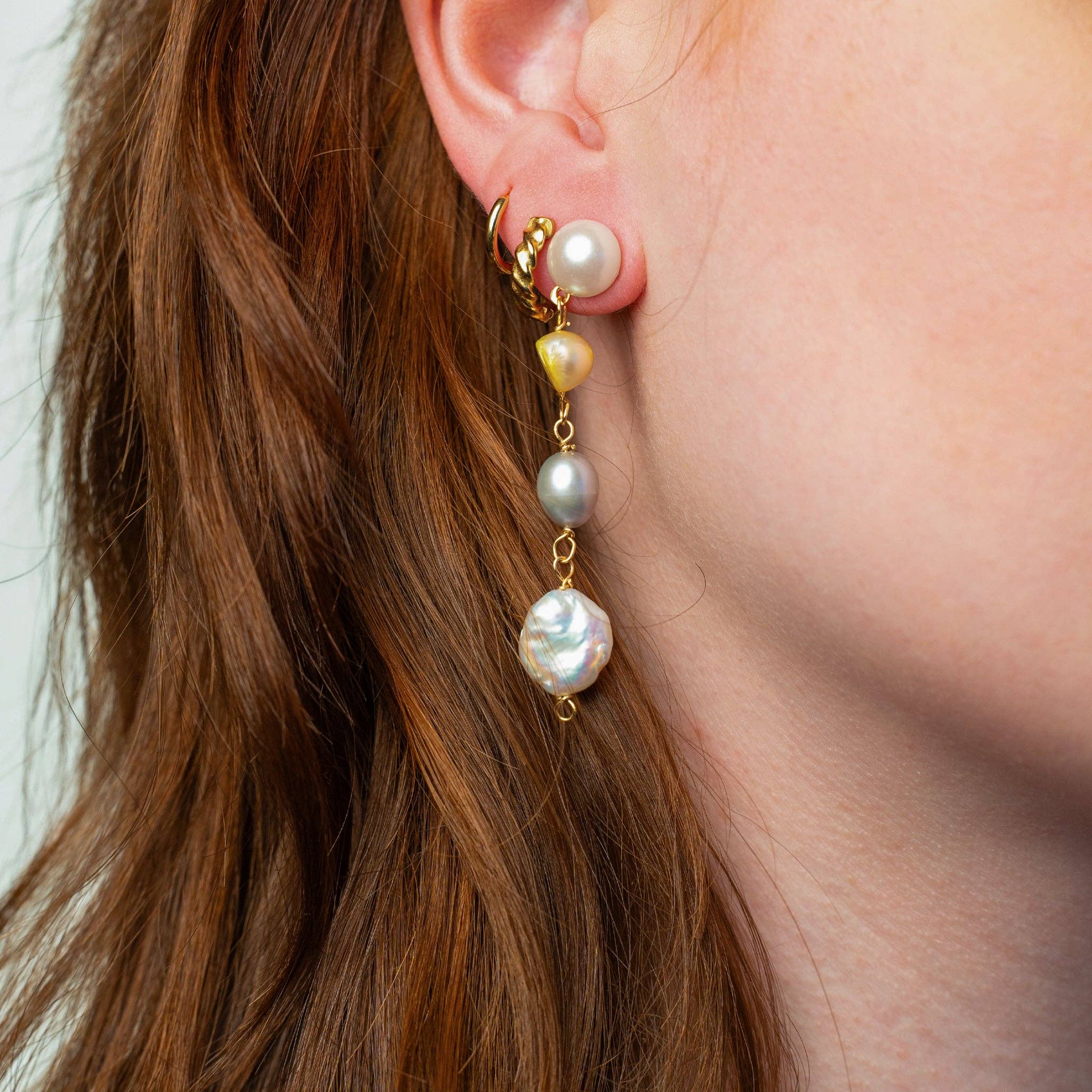 Les boucles d’oreilles créoles Shiloh sont fabriquées avec des perles de verre vintage et ornées d’un fini en or rempli. Pièce unique.