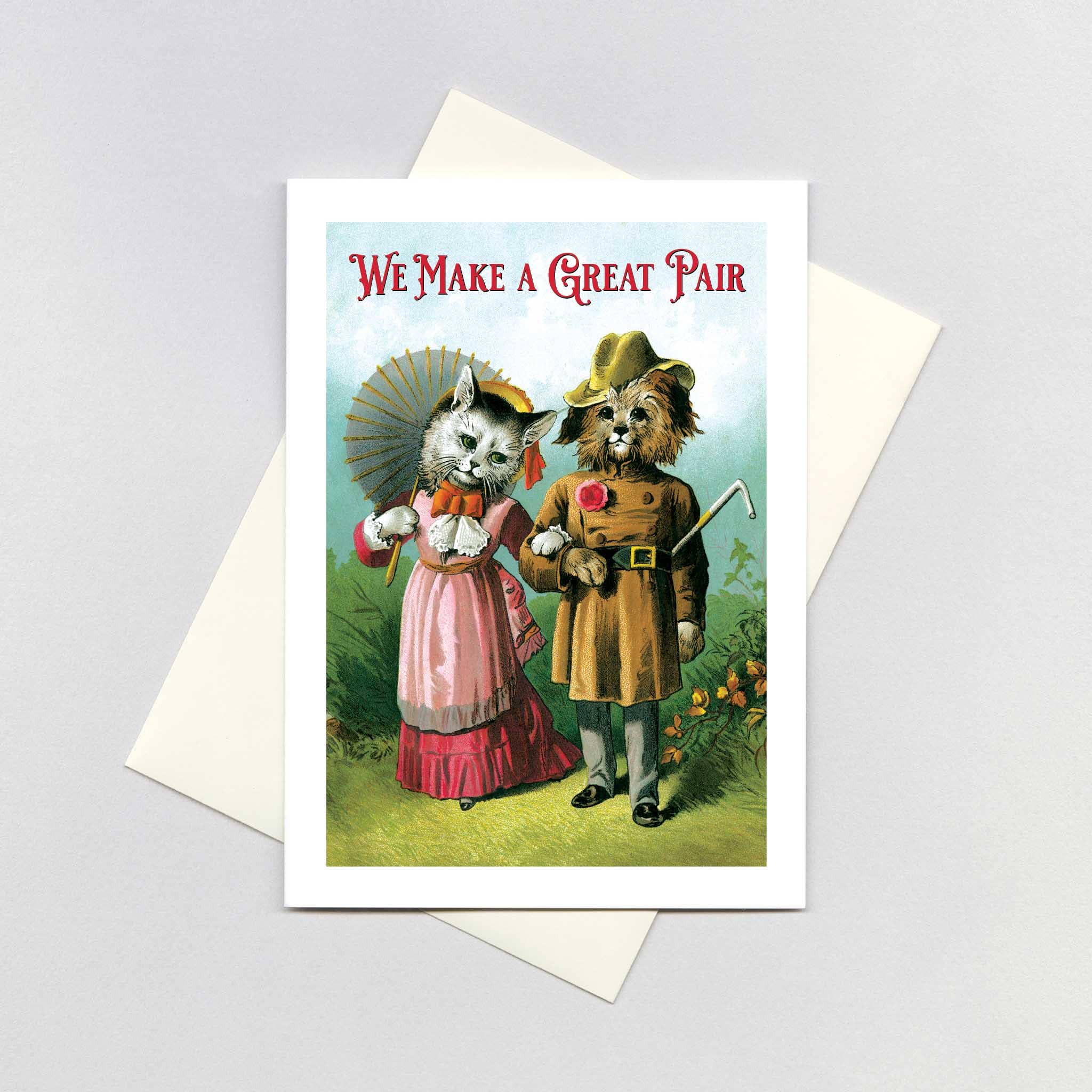 MESSAGE EXTÉRIEUR : Joyeux anniversaire, beau gosse ! INTÉRIEUR VIDE Un chat dandy pour un beau voeu d'anniversaire ! Cet homme cavalier provient d'un livre de collection relié datant de 1890, <em>Petland Picture Album</em>, contenant des illustrations en couleur pleine page d'enfants et d'animaux. Nous avons été ravis d'y avoir trouvé ce Puss in Boots, car c'est clairement une star ! Ce produit a été conçu et imprimé sur mesure sur notre site de Seattle.