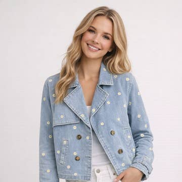 Veste en jean à imprimé léopard... La taille supérieure s'adapte à des manches longues avec des poignets. Grandes poches poitrine. Oreillette inférieure vieilli et effilochée. Associez-le à un denim vieilli et à des bottes longues. *DÉTAIL* -Coupe oversize -Manches longues -Épaule tombant -Fermeture à boutons avant