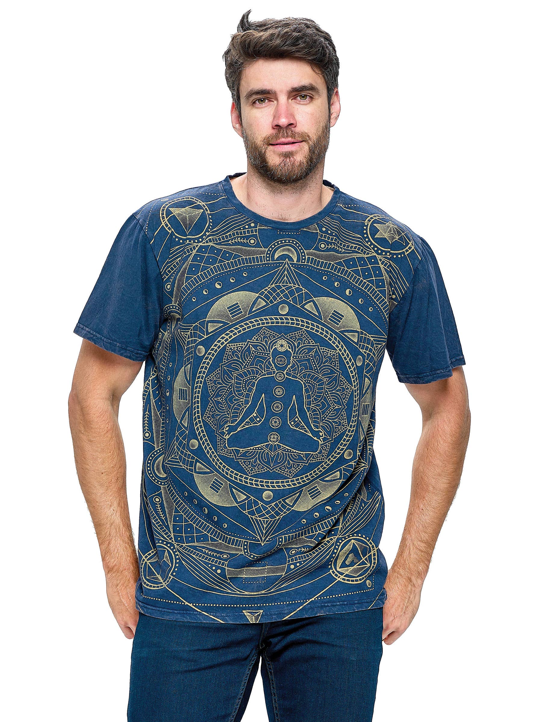 Ce t-shirt pour homme est un mélange de style et de qualité. Il présente une superbe impression de géométrie sacrée, de champignons et de fleurs de lotus. Ce t-shirt a été conçu pour offrir une durabilité et un confort ultimes. Il est parfait pour la méditation, le yoga ou tout simplement pour sortir dans un look décontracté et détendu.