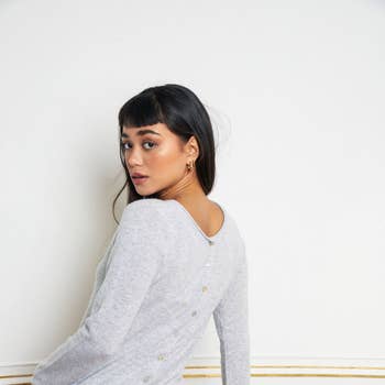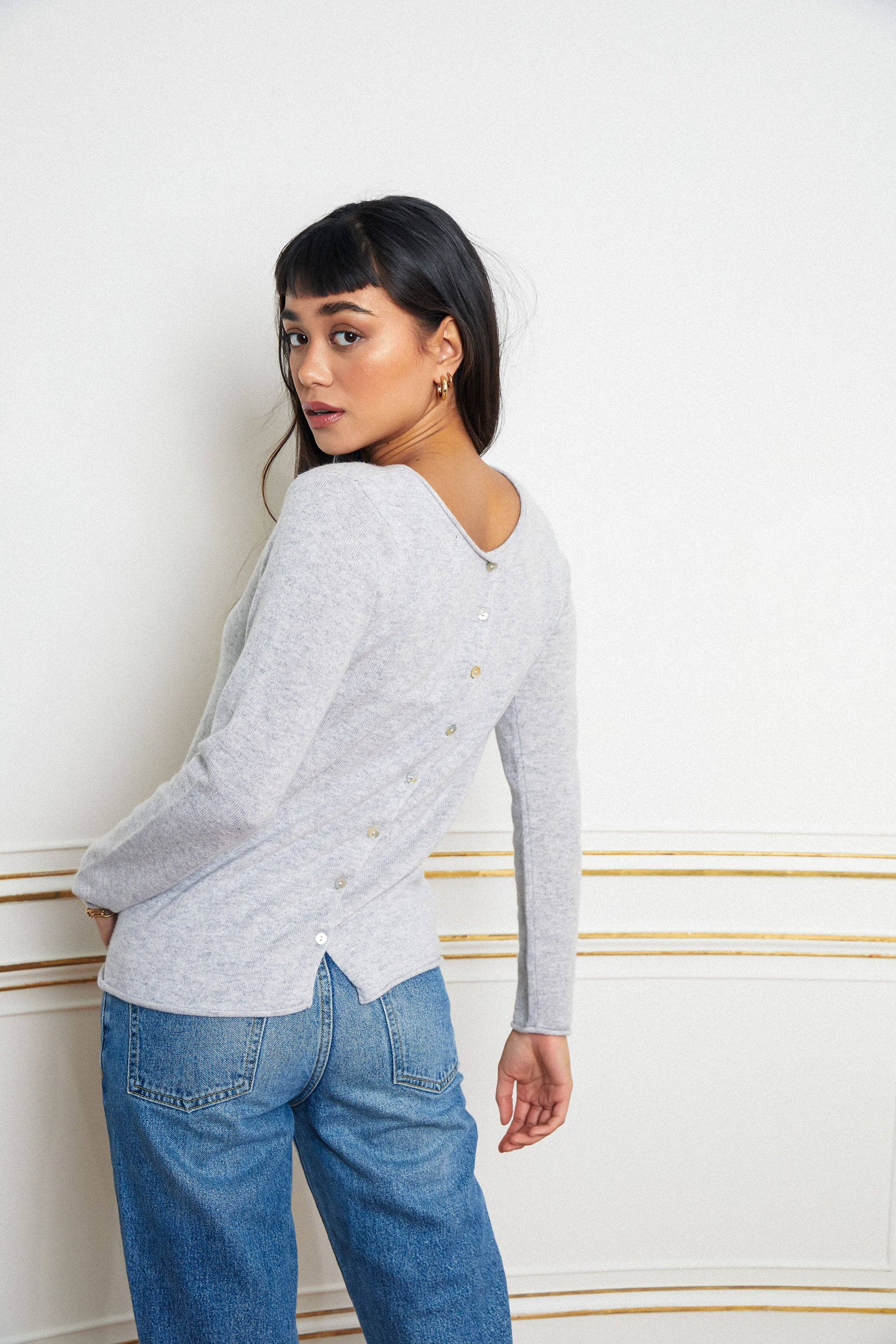 Pull à col en V à œillets et épaules tombantes