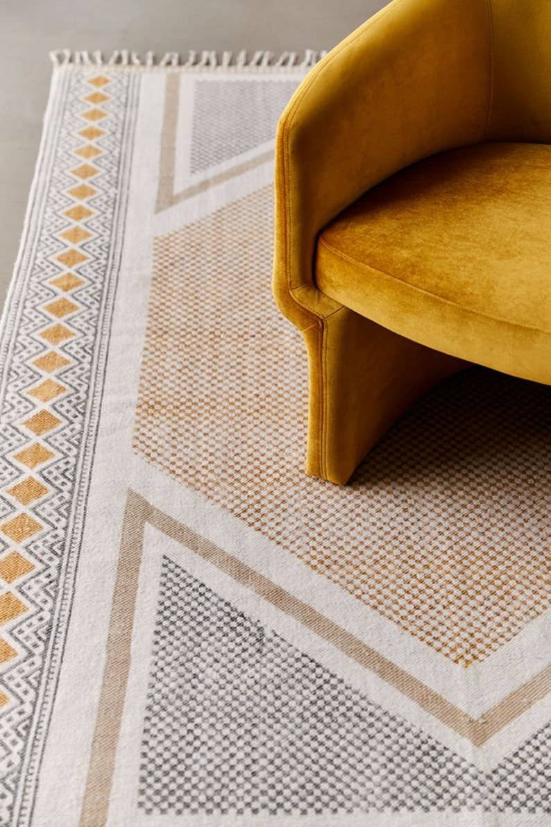 Tapis noué à la main et imprimé à la main 100 % coton et fait main Lavage en machine DISPONIBLE DANS LES TAILLES SUIVANTES : 3 x 5 pieds (36 x 60 pouces) 4 x 6 pieds (48 x 72 pouces) 5 x 8 pieds (60x96 pouces) 6 x 9 pieds (72 x 108 pouces) 8 x 10 pieds (96 x 120 pouces) 9 x 12 pieds (108 x 144 pouces) 10 x 14 pieds (120 x 168 pouces) 12 x 16 pieds (144 x 192 pouces)