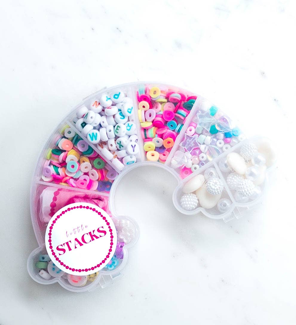 Notre kit de perles Over the Rainbow est livré avec une variété de perles pour créer vos propres bracelets ou colliers. Ce kit comprend des perles alphabet arc-en-ciel, des perles en argile, des perles cœur et étoile irisées, des perles disco blanches, des perles fleur, des perles visage souriant, ainsi que du fil rose et transparent. Chaque kit peut varier. Veuillez nous contacter pour un kit personnalisé ou une commande spécifique. ATTENTION : CONTIENT DE PETITES PIÈCES ET PEUT CONSTITUER UN RISQUE D'ÉTOUFFEMENT POUR LES ENFANTS DE MOINS DE 3 ANS. LA SURVEILLANCE D'UN ADULTE EST CONSEILLÉE.