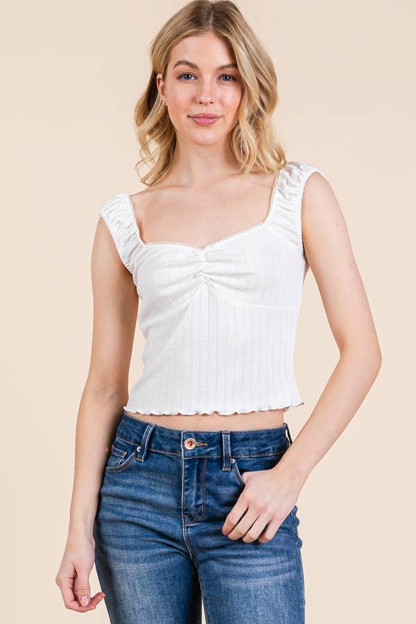 - Encolure carrée - Manches courtes - Côtelé - Manches courtes - Haut court - Très texturé - 55 % coton, 35 % polyester, 10 % élasthanne - Importé. Conçu aux États-Unis.