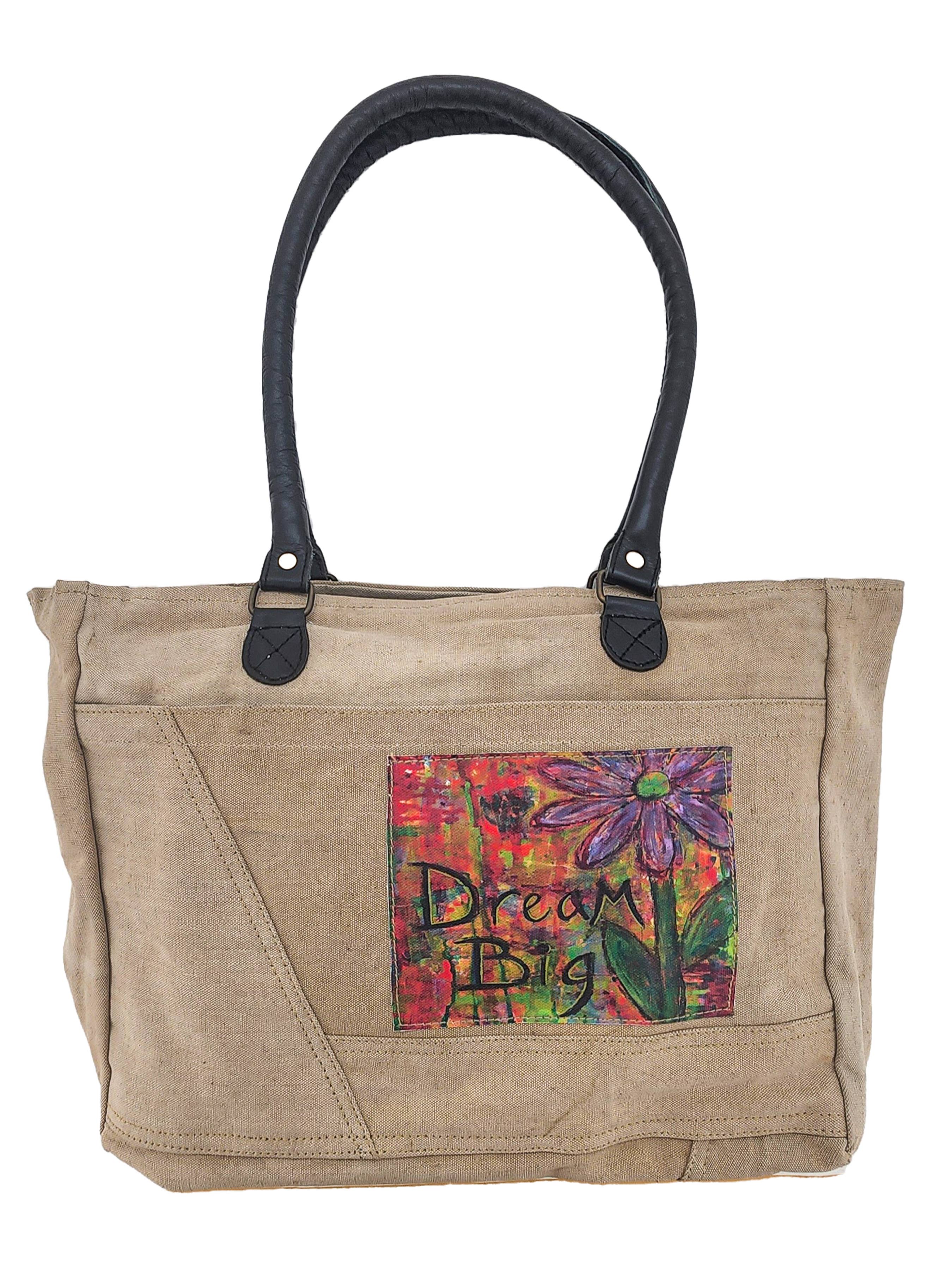 Notre sac de marché est fabriqué à la main avec une véritable tente militaire recyclée, possède une fermeture éclair sur le dessus ainsi qu'une poche intérieure, est entièrement doublé et a des poignées en cuir roulé avec une chute confortable de 12,5 pouces. Le sac mesure : 48 cm de largeur x 36 cm de hauteur x 15 cm de profondeur AVERTISSEMENT : Nos sacs en tente militaire recyclée sont un hommage et un rappel des sacrifices et des contributions des anciens combattants militaires. Sachez que ces sacs sont fabriqués à partir de véritables tentes militaires usagées et ne sont pas de nouvelles toiles emballées comme des tentes ou bâches recyclées. CE SONT LES VRAIS DE VRAIS !! En conséquence, le matériau de la tente présentera des signes d'imperfections usées qui ajoutent à son caractère. Chaque sac présente des différences d'imperfections authentiques, de taches et de couleurs. Votre sac sera aussi unique que l'expérience de chaque soldat cherchant refuge dans ces tentes, que ce soit sur le terrain d'entraînement ou en zone de combat. Toutes les ventes sont finales.