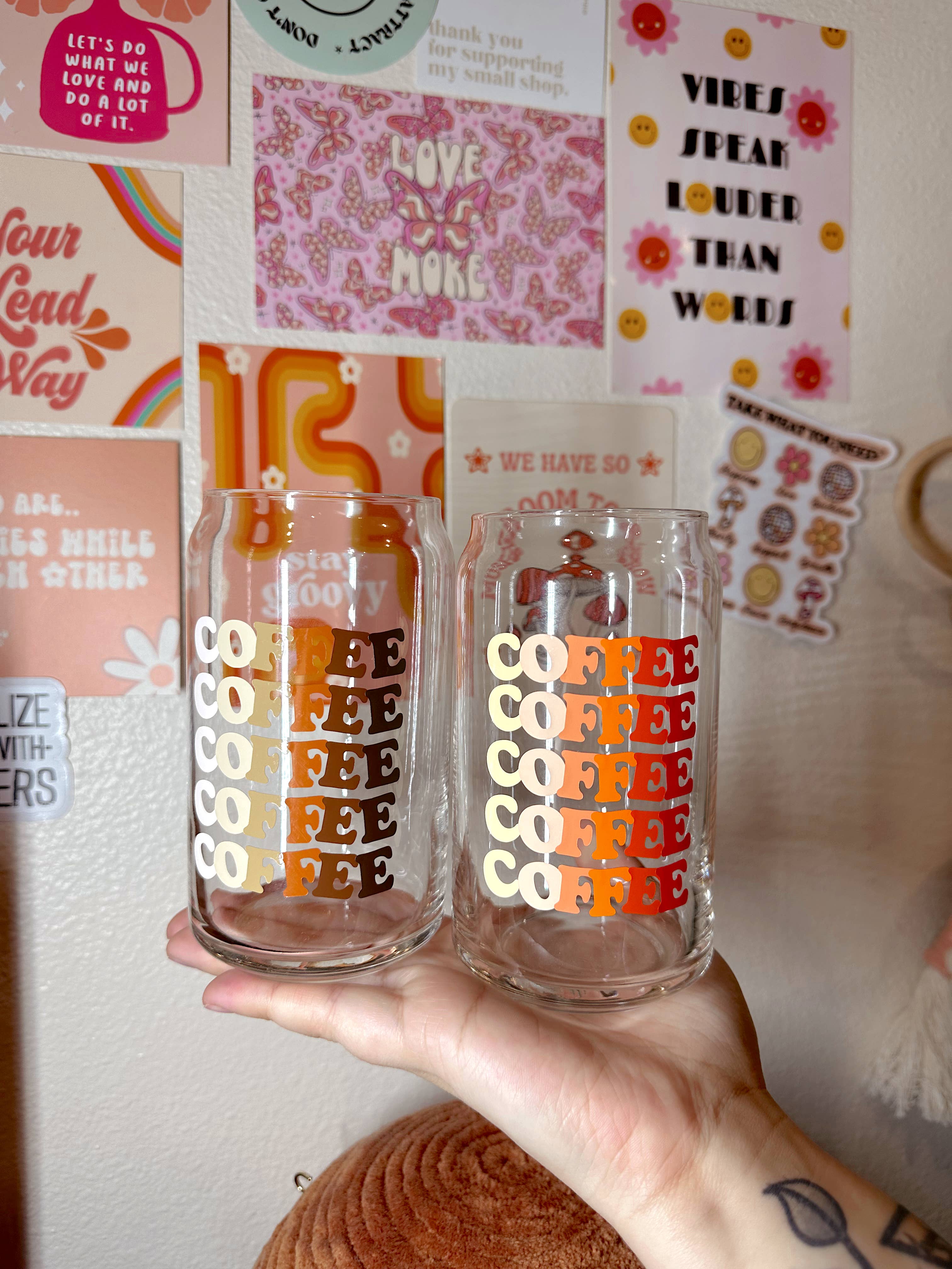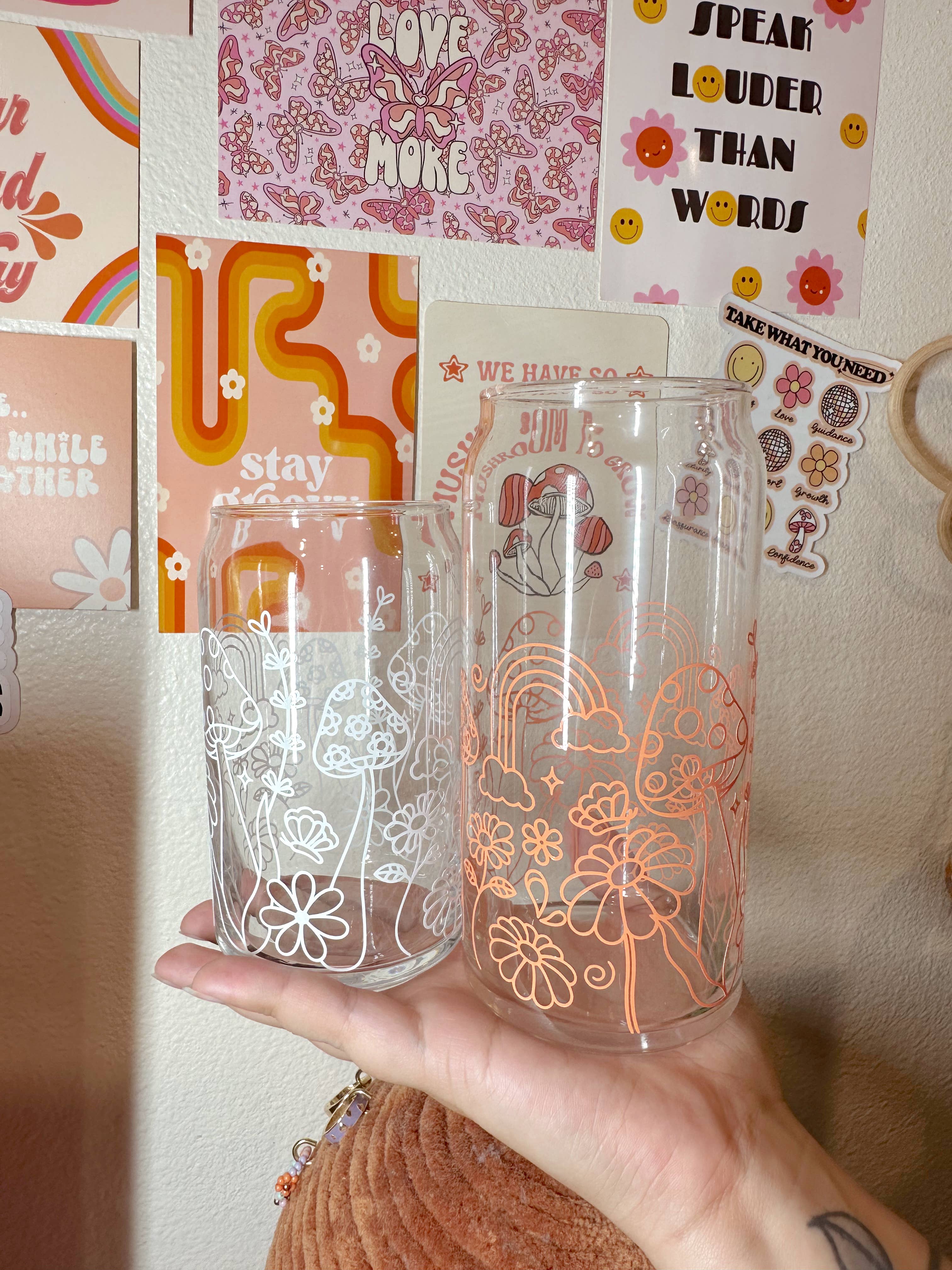 Les boissons sont toujours meilleures dans une jolie tasse ! Pourquoi ne pas l'ajouter à votre collection ? Détails : Presque tous les modèles sont disponibles dans une tasse en verre de 16 oz ou 20 oz pour canette de bière. Les couvercles et les pailles sont vendus séparément. Fabriqué avec du vinyle permanent Toutes les tasses sont fabriquées sur commande.
